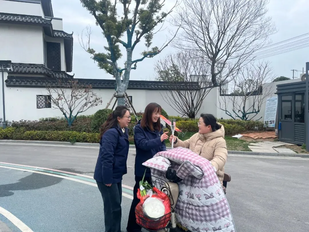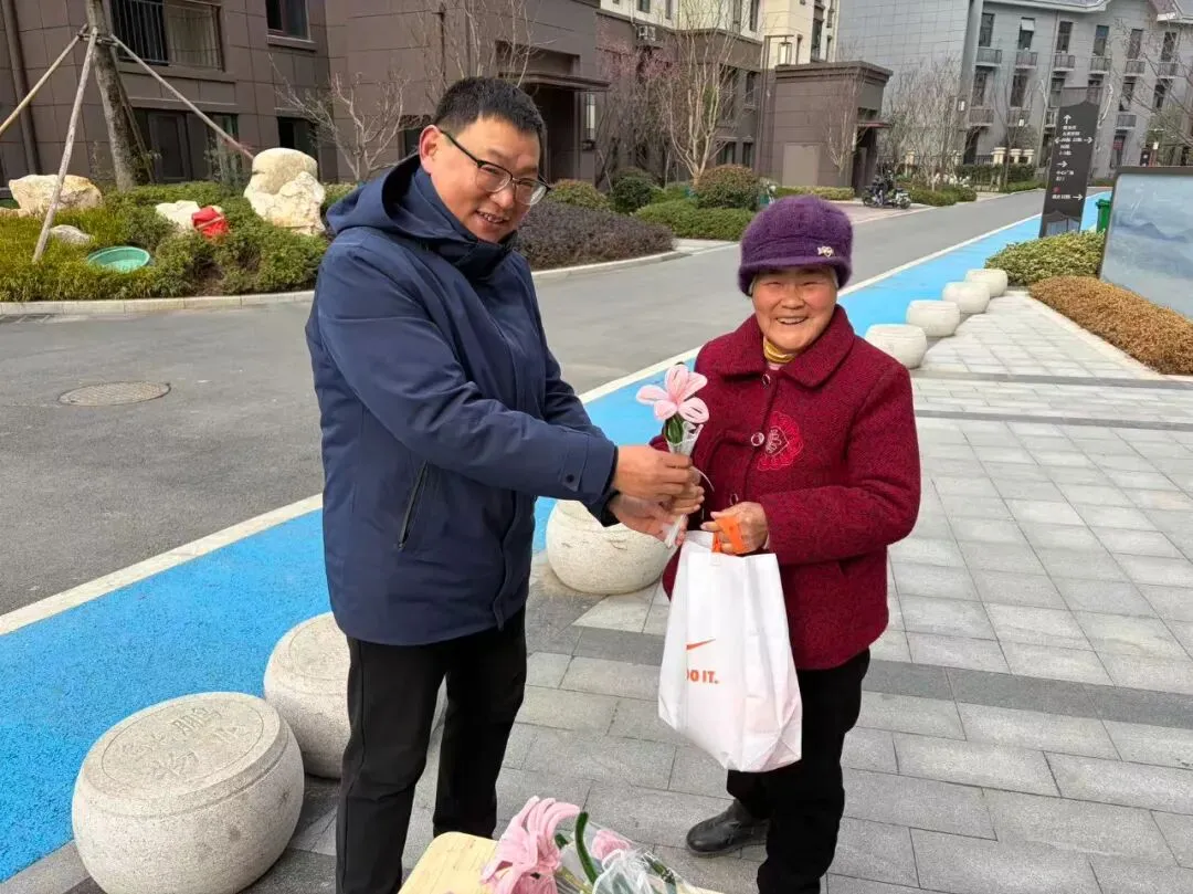 活动现场暖意融融,物业工作人员化身“送花使者”,早早到位做好准备,有序开展鲜花派送工作。他们面带微笑,将亲手制作的手工鲜花逐一送到女性业主手中,一句句“女神节快乐”“愿您芳华永驻”的暖心问候,搭配着娇艳的鲜花,瞬间驱散了春日的微凉,传递出满满的暖意与关怀。