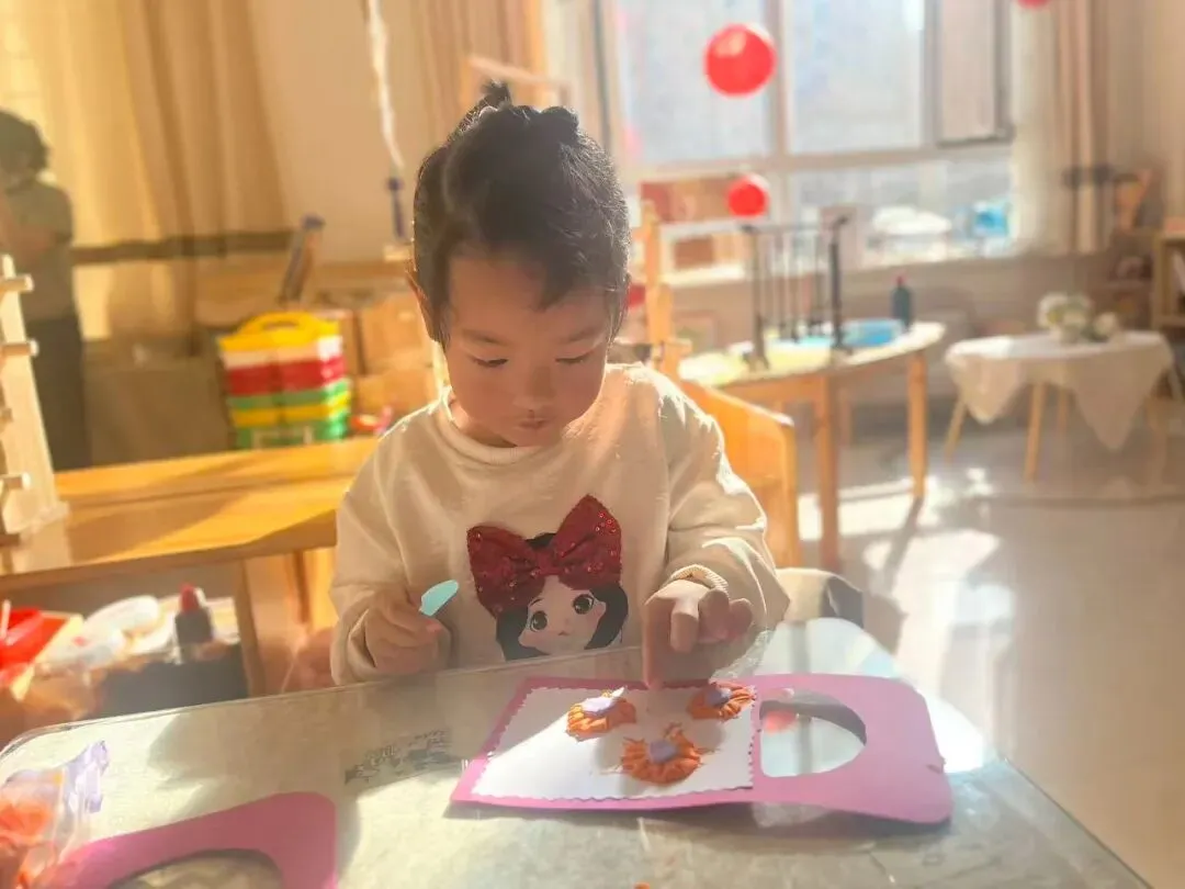 在充满爱和温情的节日里,孩子们用自己灵巧的小手悄悄的为家里的女神们准备节日的礼物。瞧!孩子们有的画一画,有的剪一剪,有的贴一贴……美好的祝福与无限的爱都倾注到了小小的礼物里,在充满仪式感的活动中,宝贝们的动手能力也得到了提升。