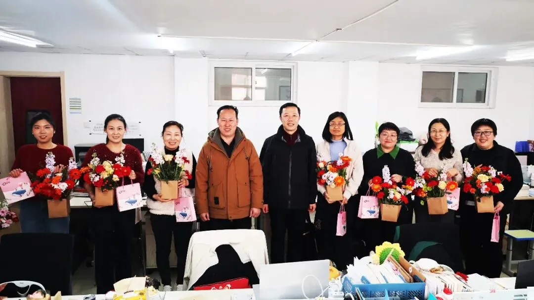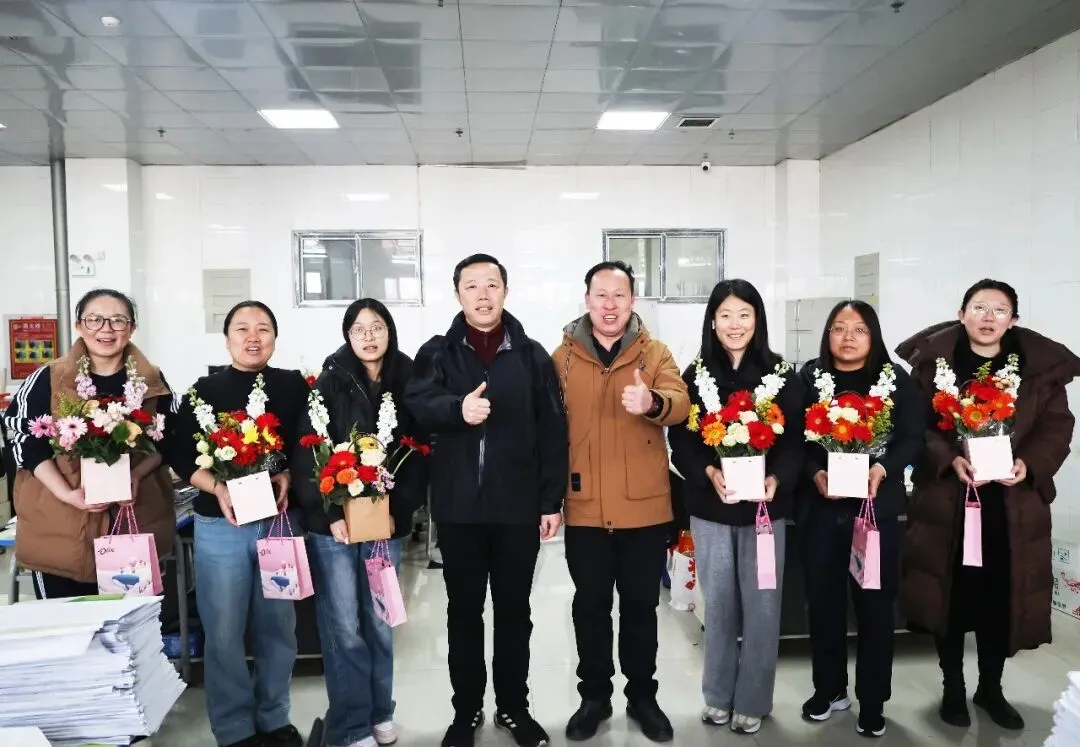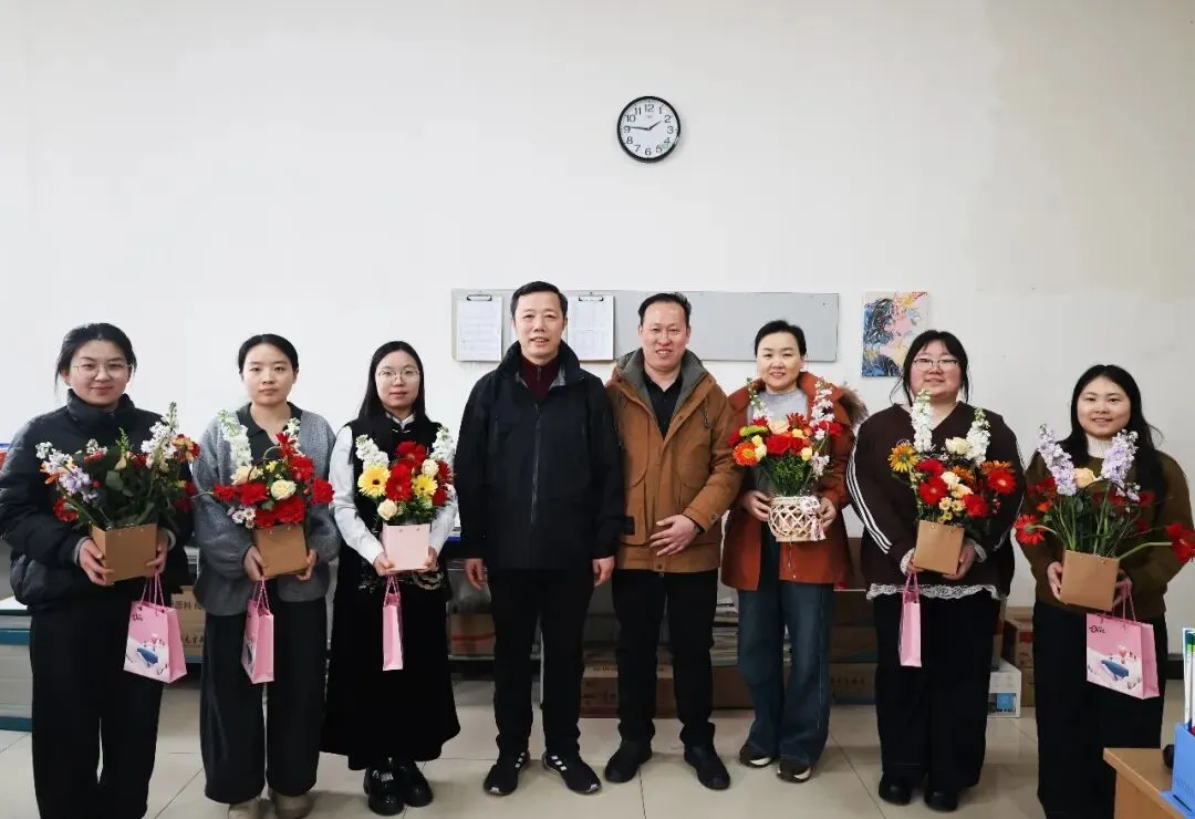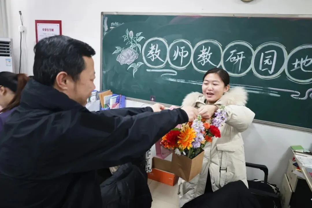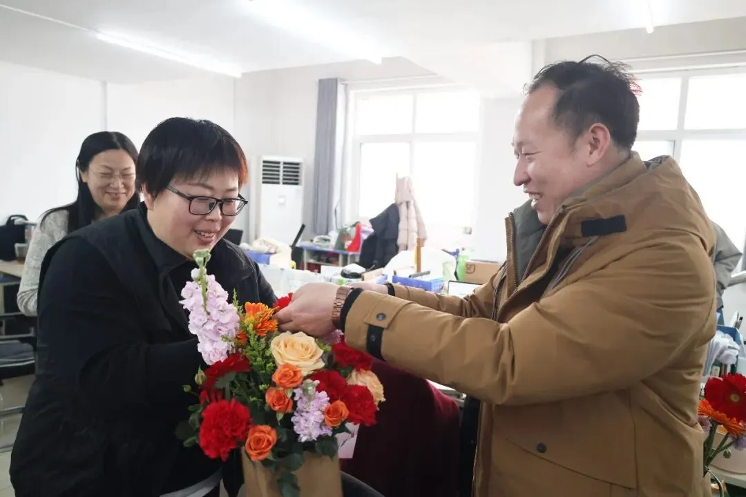 伴随着一声声温暖的祝福,校长亲自将一束束芬芳的鲜花和精美的礼物递到女教师手中。娇艳的花朵映衬着老师们惊喜的笑脸,这份清晨的“小确幸”,让整个校园的空气中都弥漫着温馨与甜蜜 。