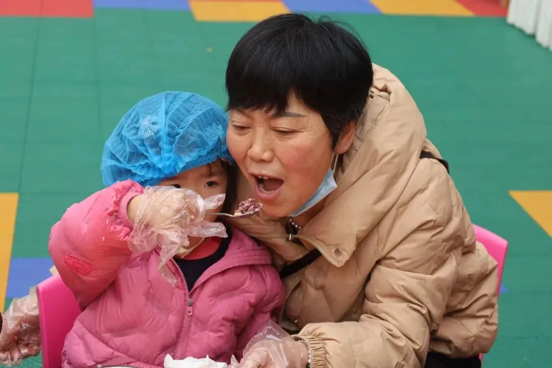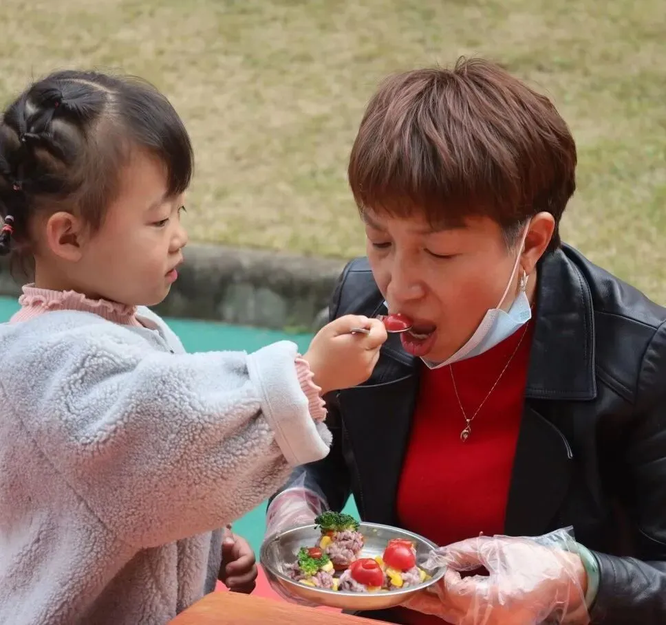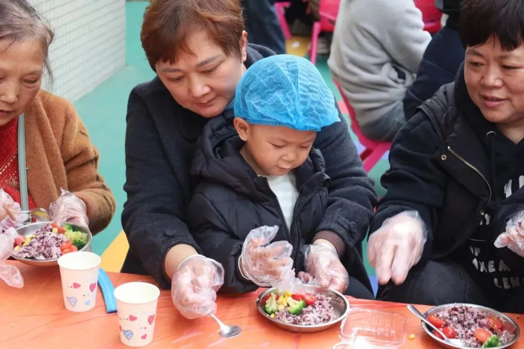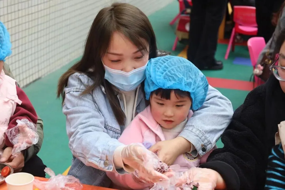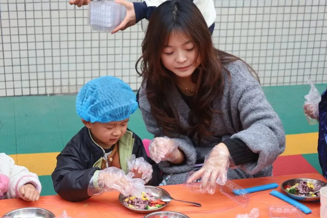 幼儿园特别邀请家长入园,开展温馨亲子饭团的制作饭团。隆幼娃和他们的女神携手合作,制作出可爱又美味的爱心饭团。
