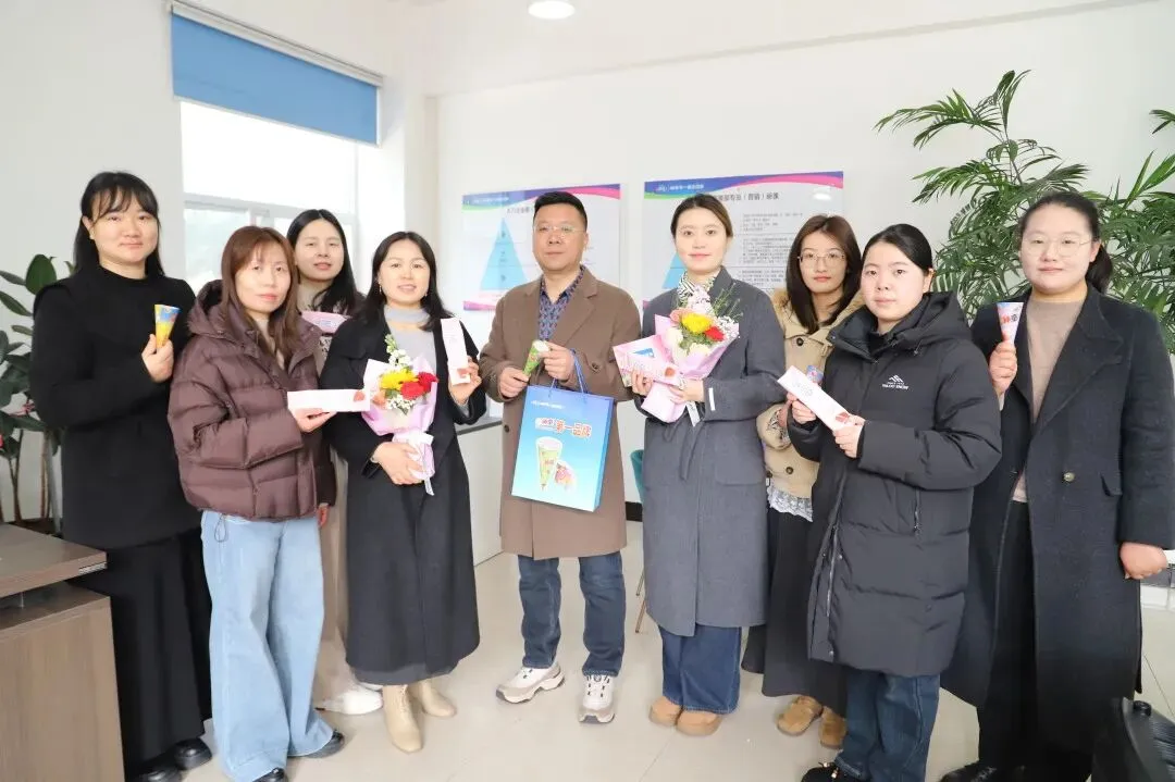 一份关怀,一份心意,一份温暖。活动伊始,集团总经理张海波、常务副总薛刚、制造副总宋海宽,亲自走进各直属部门,为每一位女员工送上节日的专属礼遇——娇艳的鲜花、甜蜜的天冰冰淇淋,还有承载满满祝福的节日贺卡。