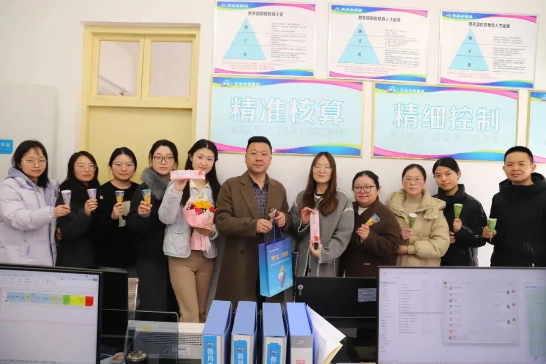 女神节快乐!愿你历经岁月,依旧清澈明亮;在自己的节奏里,从容绽放,优雅成长。”一句句真挚的问候,一声声温暖的祝福,不仅传递着集团对女员工的重视与关爱,更让每一位天冰女神感受到了家一般的温暖。这份甜蜜与暖意,是节日最美好的开端。