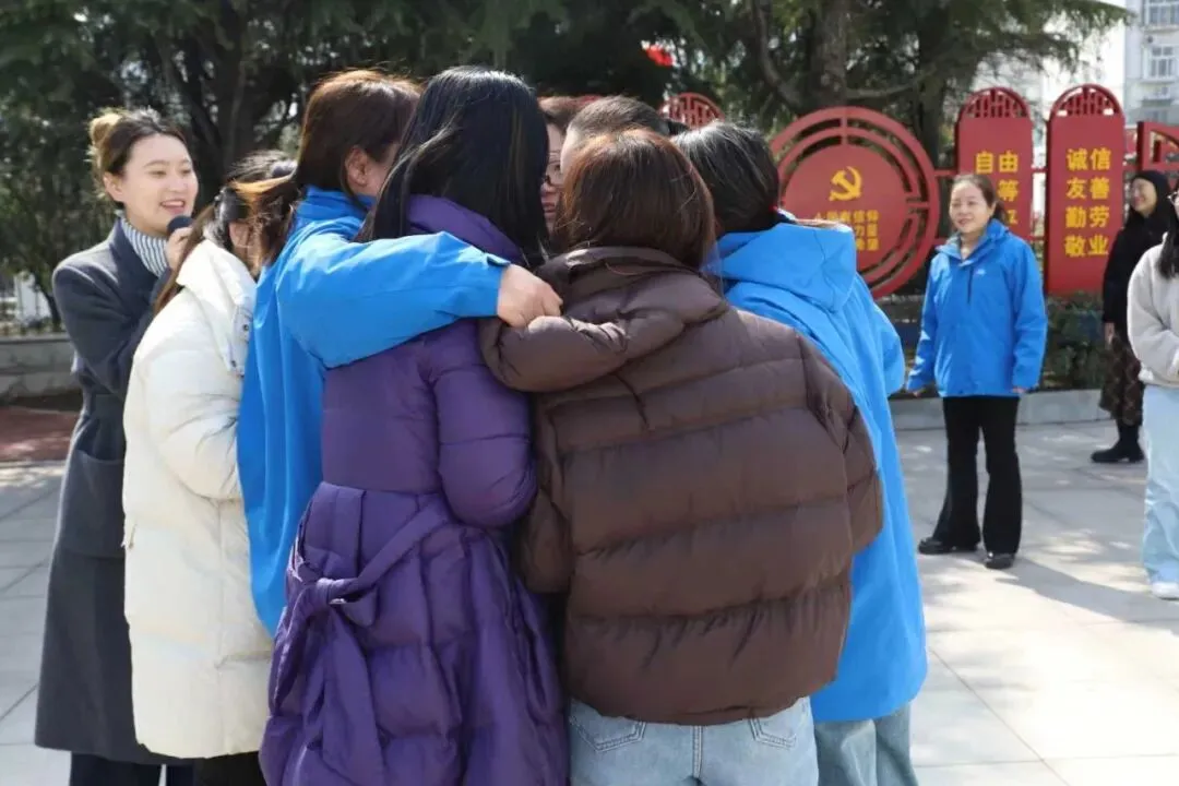 伴随着欢快的音乐,大家围成一个大大的圆圈,脸上洋溢着轻松的笑容。“桃花朵朵开!”“开几朵?”“开5朵!”主持人的指令一落,大家迅速反应,纷纷寻找伙伴抱团,默契十足。在欢声笑语中,大家的距离悄然拉近,情谊也在互动中愈发深厚。