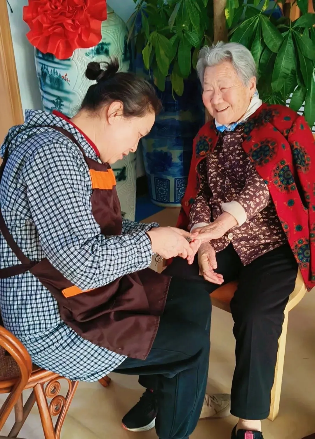 护理员,是长者们朝夕相伴的贴心人。她们把每一件小事都做到细致妥帖,让爷爷奶奶的三餐四季都满是舒心;她们记得每位长者的口味与喜好,包容长者偶尔的小情绪,用耐心化解不安,用专业守护健康。从清晨的第一声问候,到深夜的每一次巡查;从细致入微的剪指甲、洗脚,到专业科学的日常照护,她们以柔肩担起责任,用坚守诠释担当。