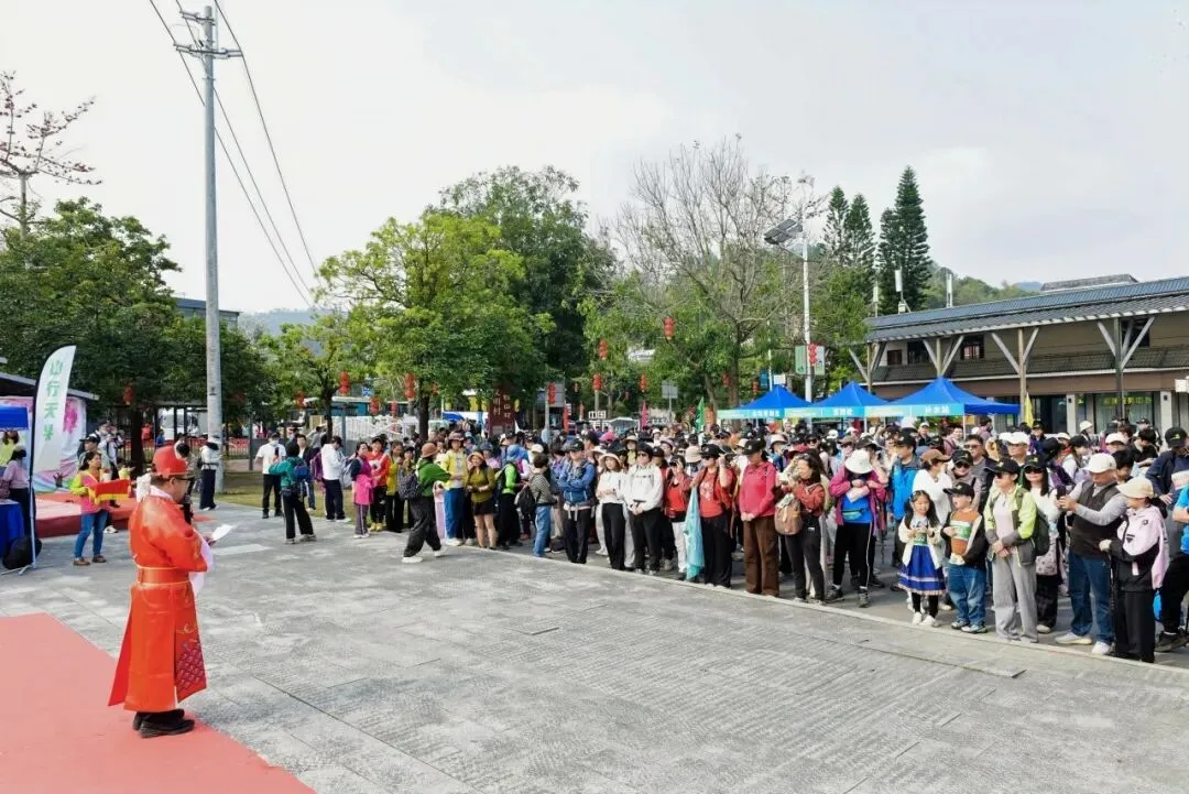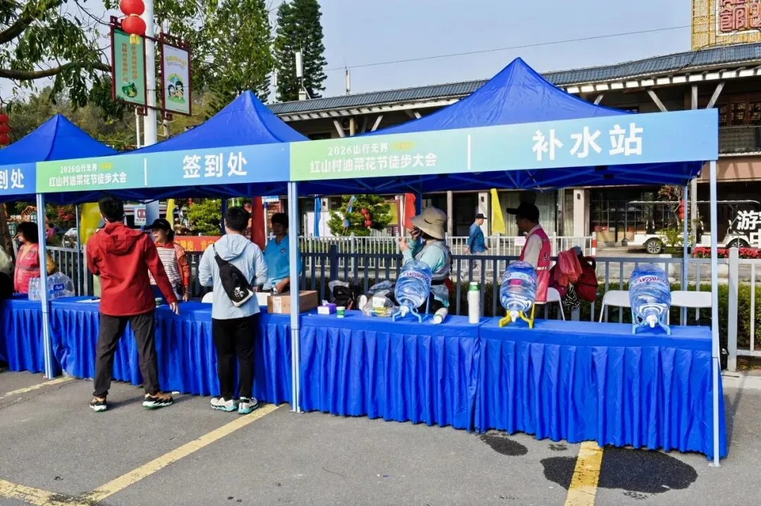 活动现场融合客家特色与乡村烟火,特色美食、农特产品一应俱全,补水站设置与医疗保障护航,赏花、徒步、古风体验、节日福利多重惊喜叠加,让这场山野之旅更显温暖贴心、趣味十足。