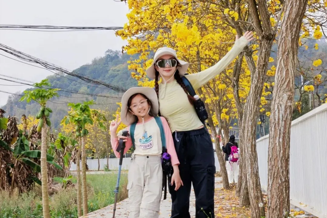 路线沿途,金黄的油菜花海与青山碧水交相辉映,还有沿途黄花风铃木林随手拍即出片,石上背瀑布、铜鼓潭瀑布、浅谷等自然秘境也次第展开。