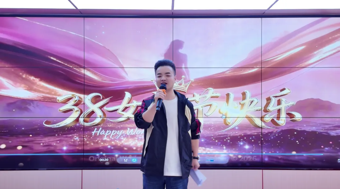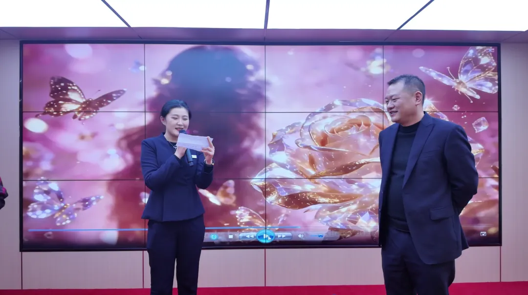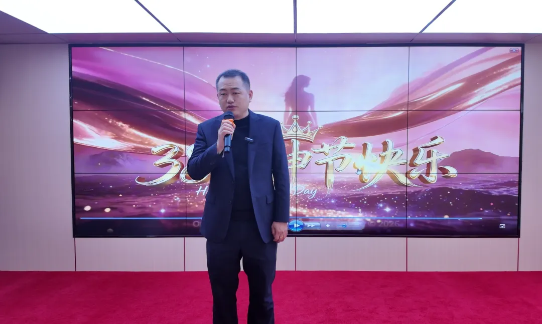 在“致敬女神”环节,物业总经理王新上台致辞,代表公司向全体女员工送上节日的诚挚祝福,感谢她们在工作中的辛勤付出和卓越贡献。