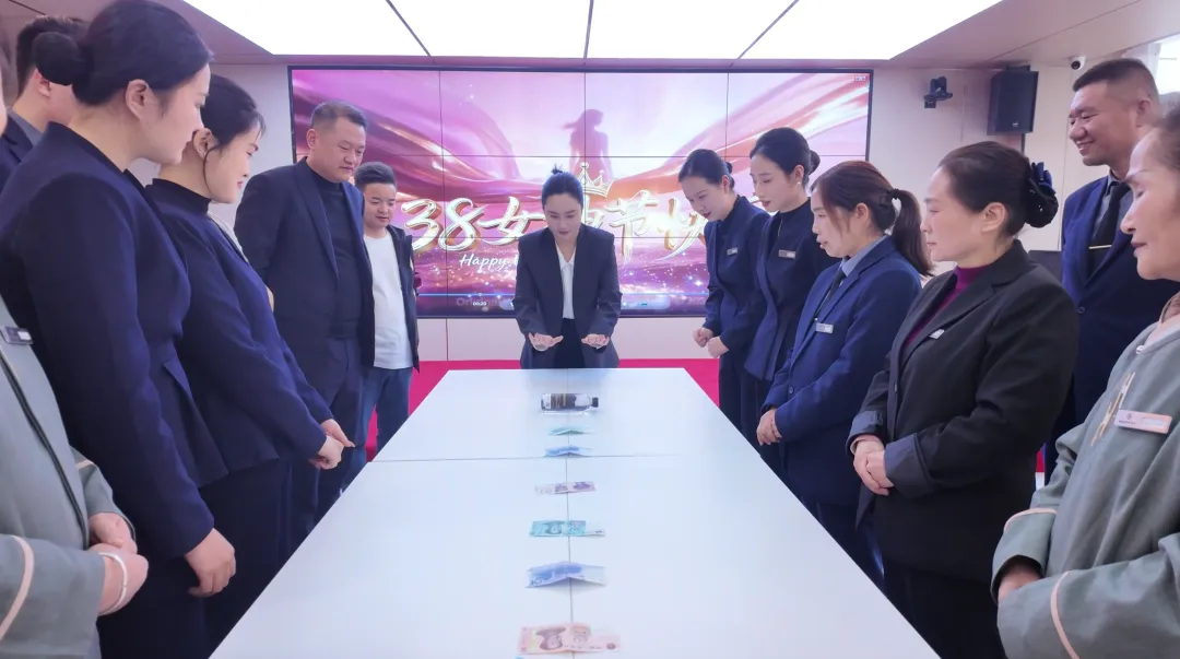 活动在热烈的氛围中拉开帷幕。伴随着掌声和礼花,男员工们在门口列队鼓掌,以最热烈的欢呼声迎接每一位“女神”入场就座,现场洋溢着欢乐与温情。
