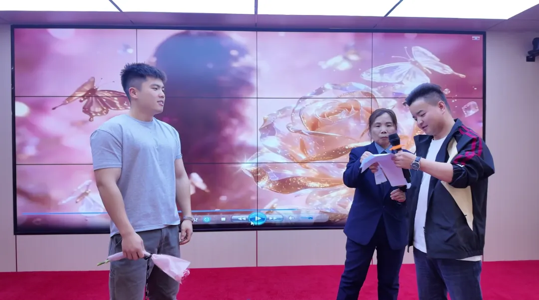 随后的游戏互动环节更是将现场气氛推向高潮。趣味游戏“财源滚滚”中,通过击鼓传花选中的女神们滚动饮料瓶赢取现金奖励,欢笑不断;“女神出题·男神渡劫”环节中,男员工们面对女神们的提问机智应对,答错者接受趣味惩罚,答对者则收获夸赞与比心,现场笑声掌声此起彼伏。