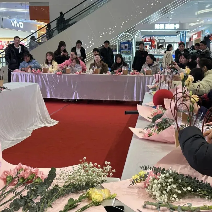 大汉茂购物中心一楼中庭化身成了一片浪漫的花海。