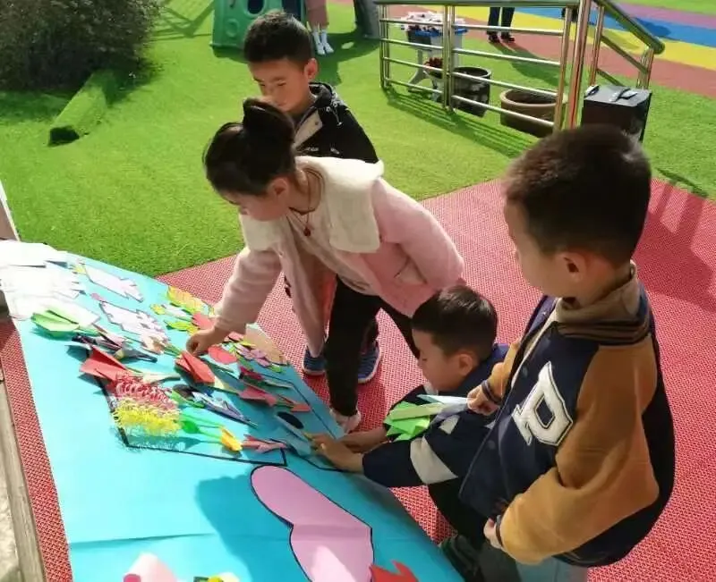 杨柳依依,桃花灼灼,迈着初春的脚步。小朋友们来到了花墙前,将自己准备的“鲜花”贴上在花墙上,更添风景。“我要把我的小红花贴在这里,那我要贴这里。”一声声童言稚语,一朵朵风光异彩。