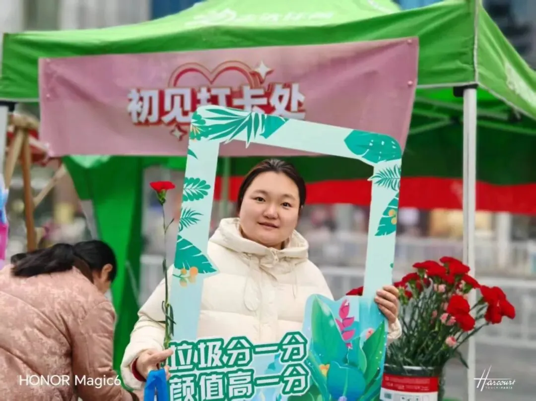 花香迎佳节,美好不缺席!垃圾分类打卡点人气满满,到场女神们完成打卡就能收获娇艳鲜花,让春日美好与暖心惊喜双向奔赴。