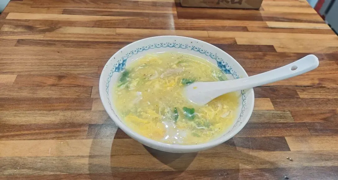 所以,我就拉来到了一家早餐店,要了一碗热热香香的撒汤。