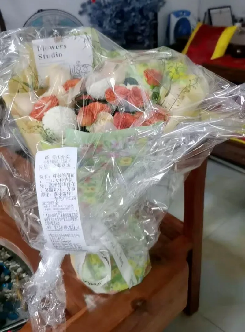 考虑到距离因素,对于镇区的女企业家,商会通过美团线上配送的方式,为邓美华、谢良燕、谭琳霞、韩雪芹、仇苗苗、黄华、李秀平送上鲜花,让温暖不因距离而减少。