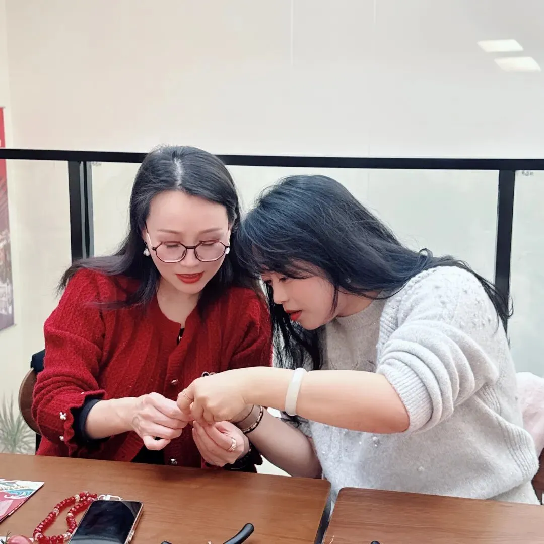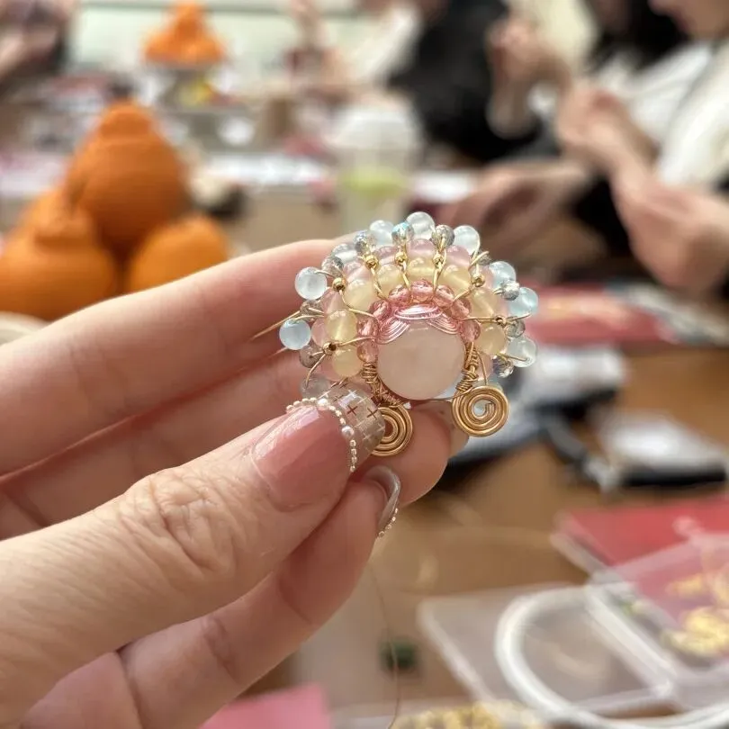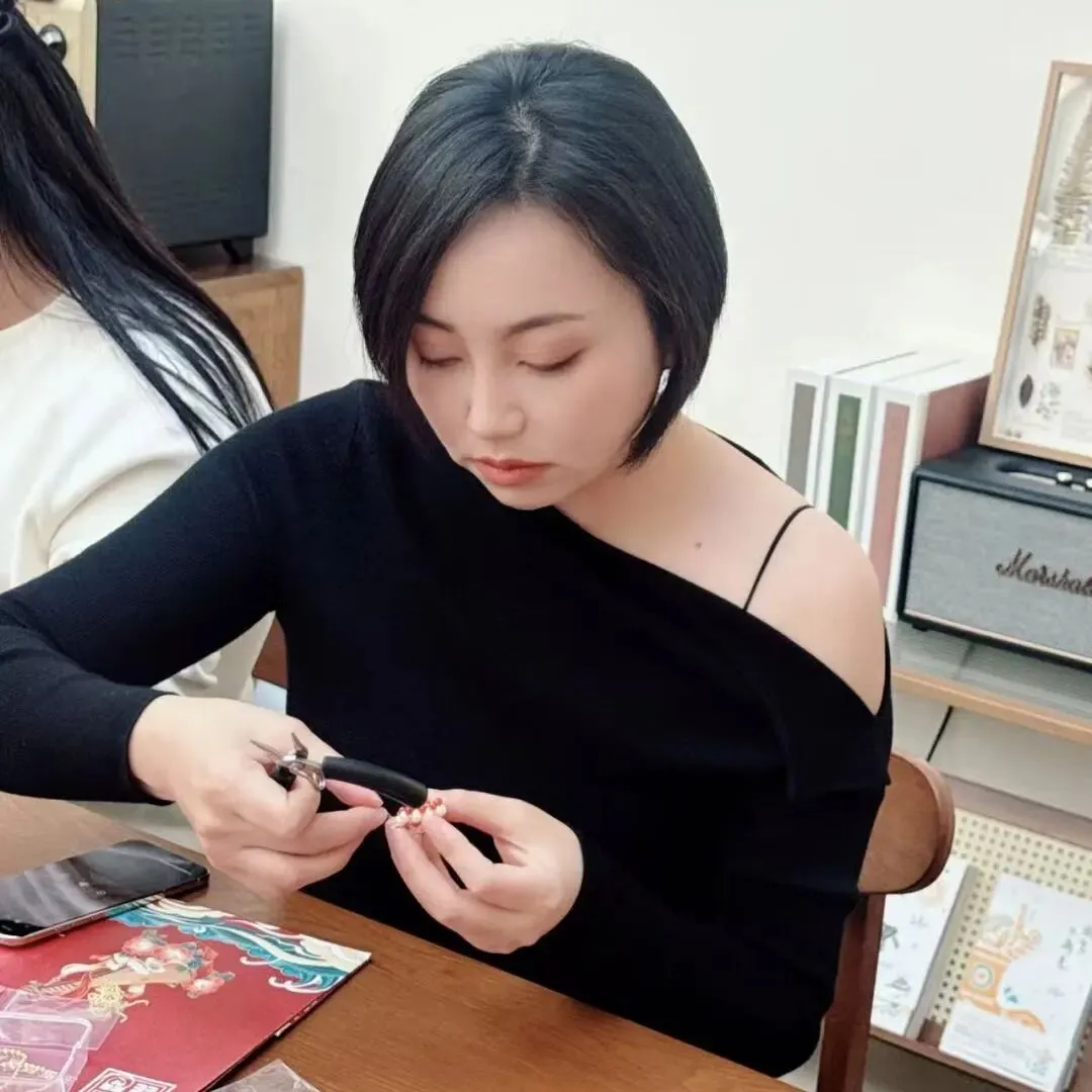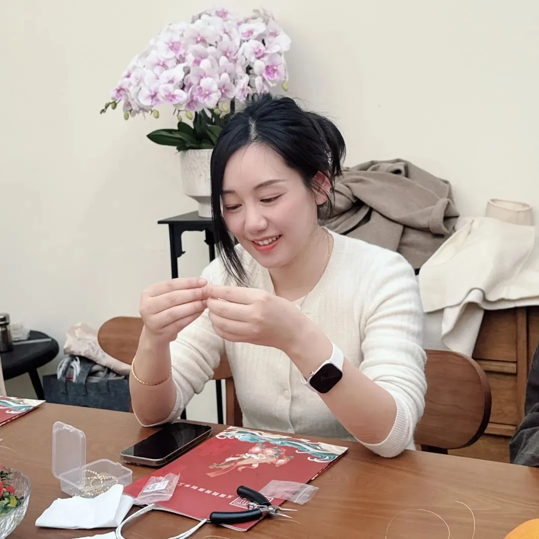 会员们凝神专注、巧手创作,将对昆曲之美的理解与巧思融入指尖,原本零散的材料,在大家的手中逐渐变成独一无二的昆曲花旦文创作品,胸针、挂件各有韵味,既饱含非遗文化的雅致内涵,又藏着亲手创作的独特心意,成品悉数带走,成为本次节日珍贵的纪念。
