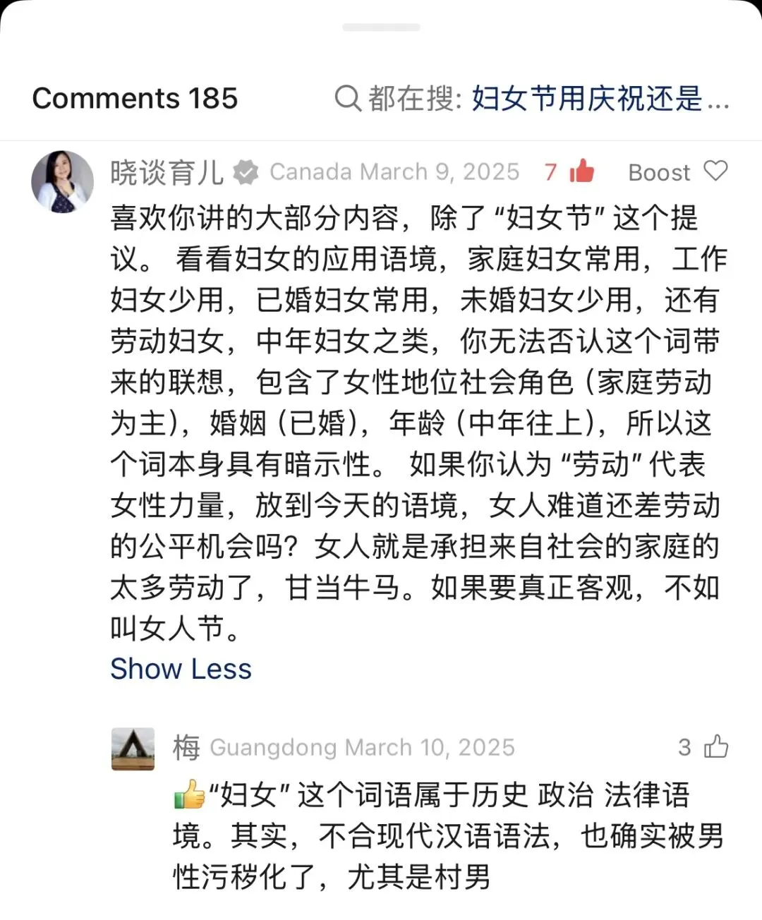 今天收到一些朋友“女神节快乐”的祝福,不由得想到了仁仁发过的一条视频,她建议把“女神节”改回叫“妇女节”。