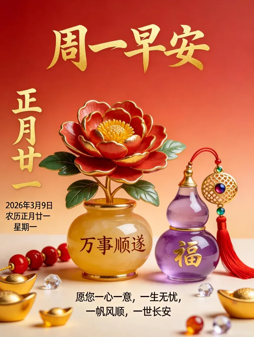 正月廿一晨光起,🌞一心一意守福气。🍵平安健康是第一,快乐相伴不缺席,✨好运围绕不停息。❤️愿你日子有诗意,生活有暖意,🌸步步皆顺意,岁岁常欢喜,🧧吉祥如意伴朝夕!早安!