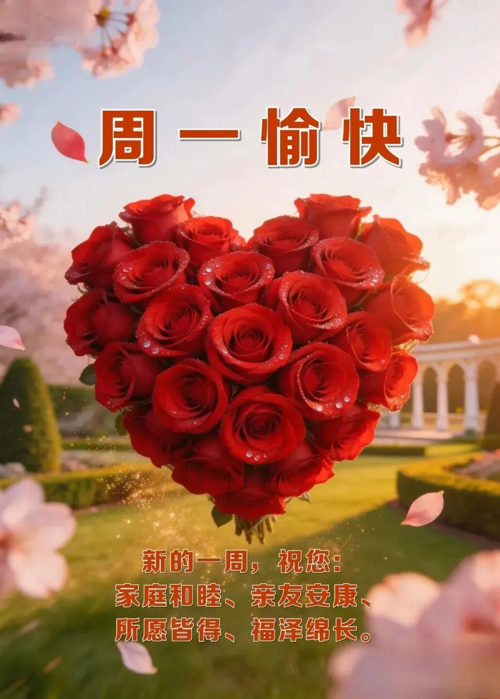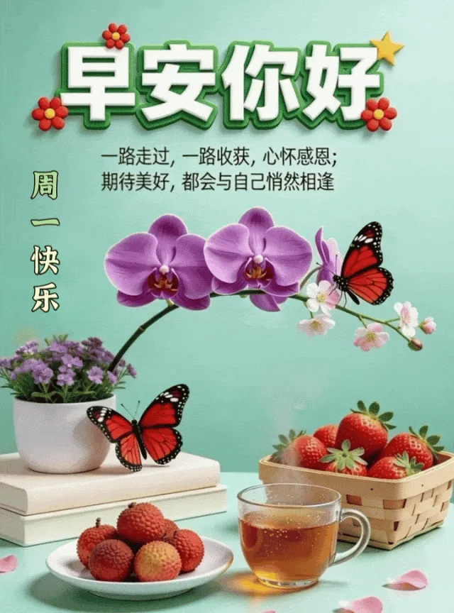 早安吉祥!新的一周,送上祝福,美好的早晨,祝你开心无忧,快乐无愁,平安依旧,健康永久,周一愉快!