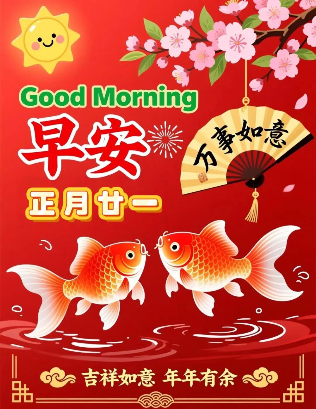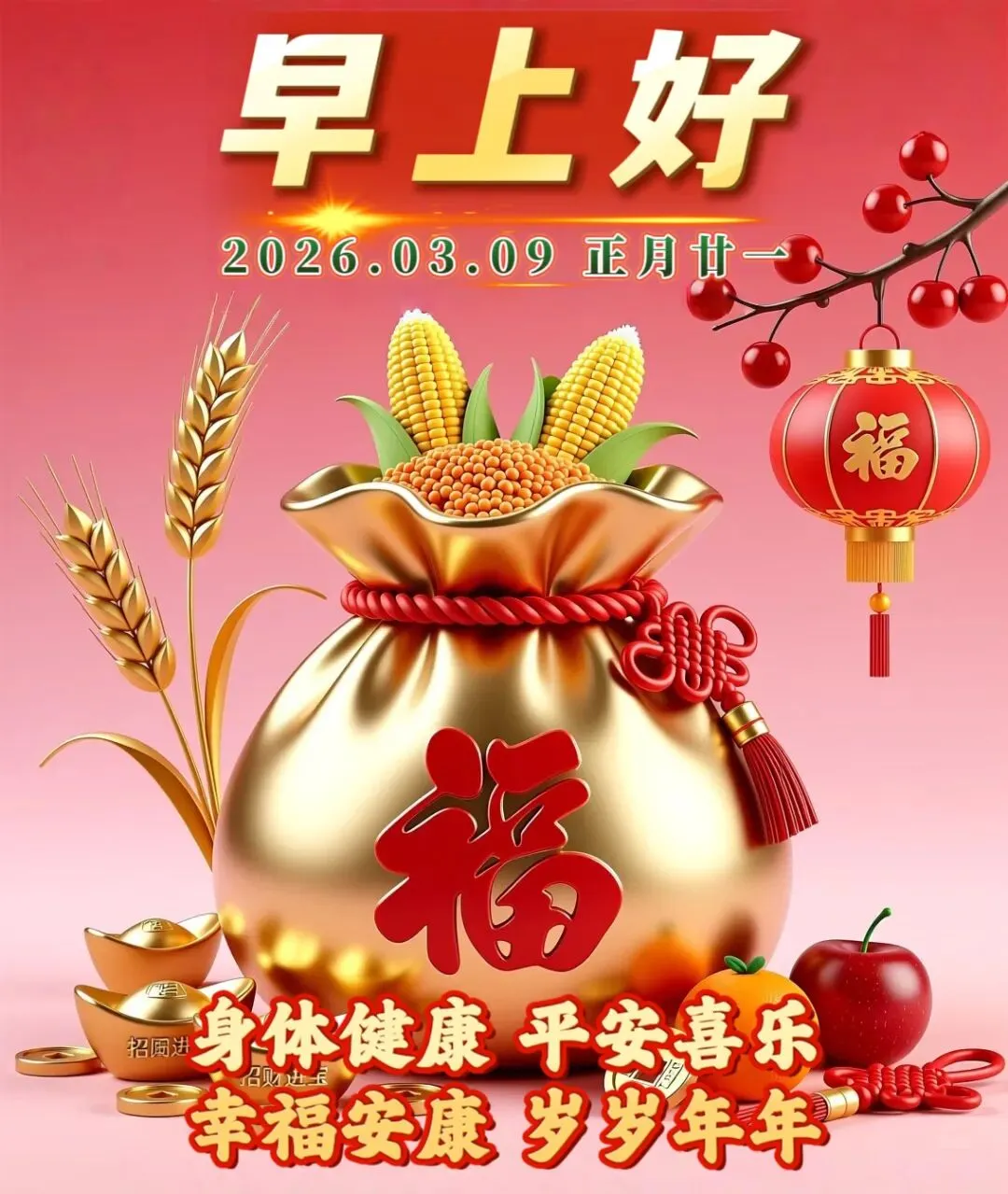 💖今天是正月廿一,🌷在今天这个吉祥的日子里,🌈我将最真心的祝福送给你,🌞祝你一家和和睦睦,🌅一年开开心心,一生快快乐乐,💕一世平平安安!💐