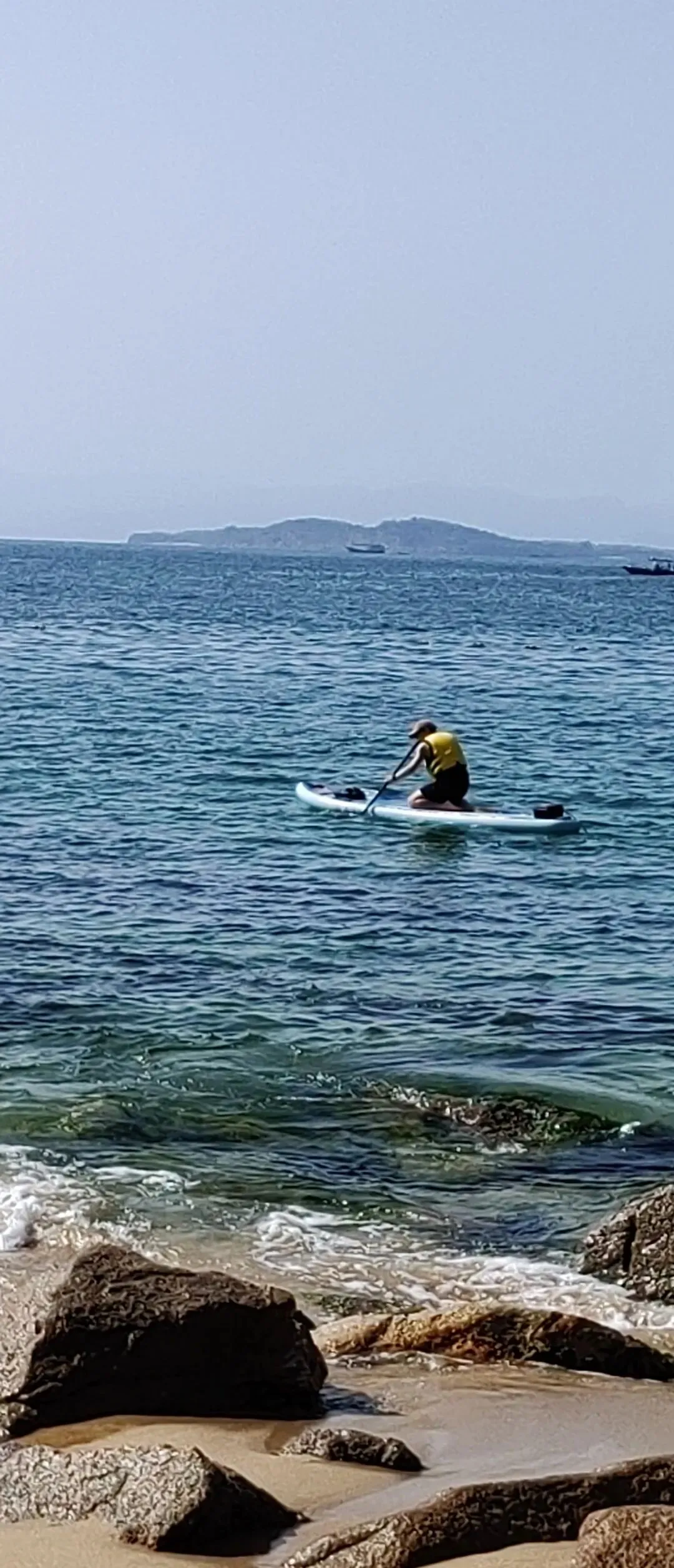 我和龙飞沿着沙滩往前走,不多远就是乱石林立的礁石。在远处的礁石上,有几个人在钓鱼。在海面的不远处,有一艘游艇抛锚在中间,也有人坐在游艇上钓鱼。