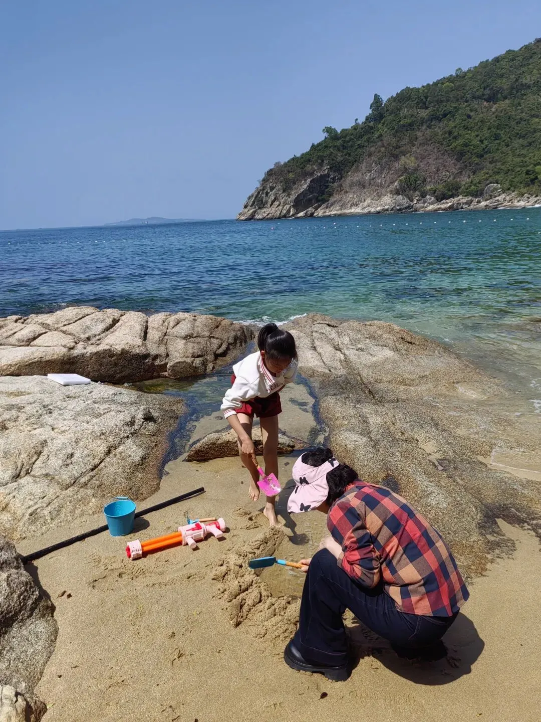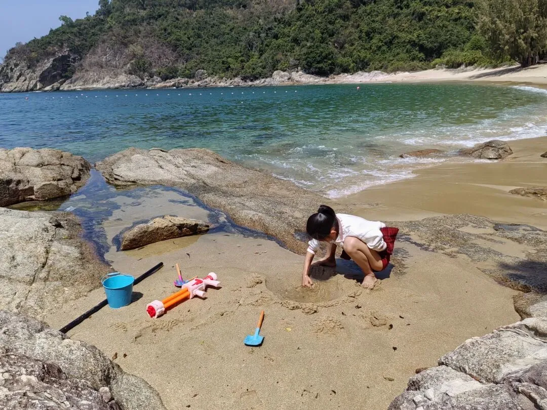伊伊八岁的小女孩悠悠,跑向沙滩,一头扎进挖沙游戏中,乐此不疲。伊伊在沙滩的树荫下,铺上垫子,看手机,赏海景。