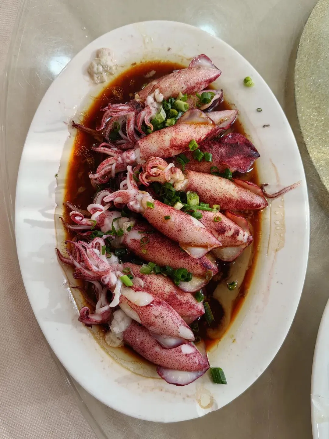 依照伊伊校长的推荐,在南澳海鲜餐馆里吃了晚饭。椒盐皮皮虾,外酥里嫩。花甲芥菜豆腐汤,乳白鲜美。紫色的吹筒小鱿鱼,摆在碟中像一朵朵喇叭花,特别漂亮,吃起来脆嫩爽口。量豆腐,软糯绵长,入口即化。海胆炒饭,金黄香脆,吃了还想吃。