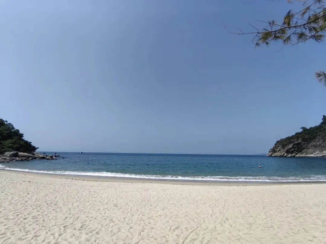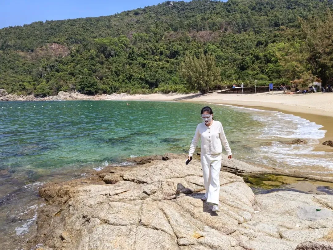 吃完早点,我们开车来到南澳的政洁海湾。这是一个没有开发的野海湾,不是很大,三面环山,形如弯月。由于来的人不多,沙子很白,海水很清澈,海底的沙石水草,看的清清楚楚,一目了然。远处的海面,在阳光的照耀下,蓝的像夜里猫的眼睛,让人心悸。这里的海水质量,与澳洲的大堡礁好有一比。