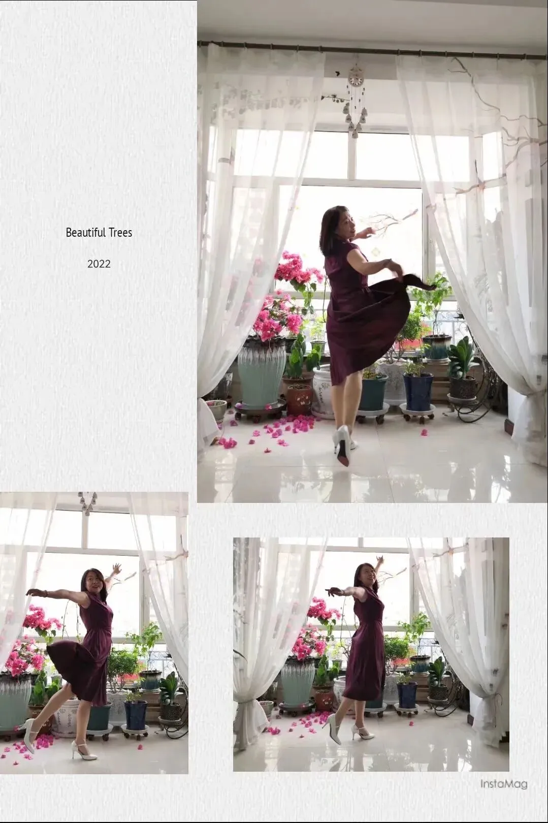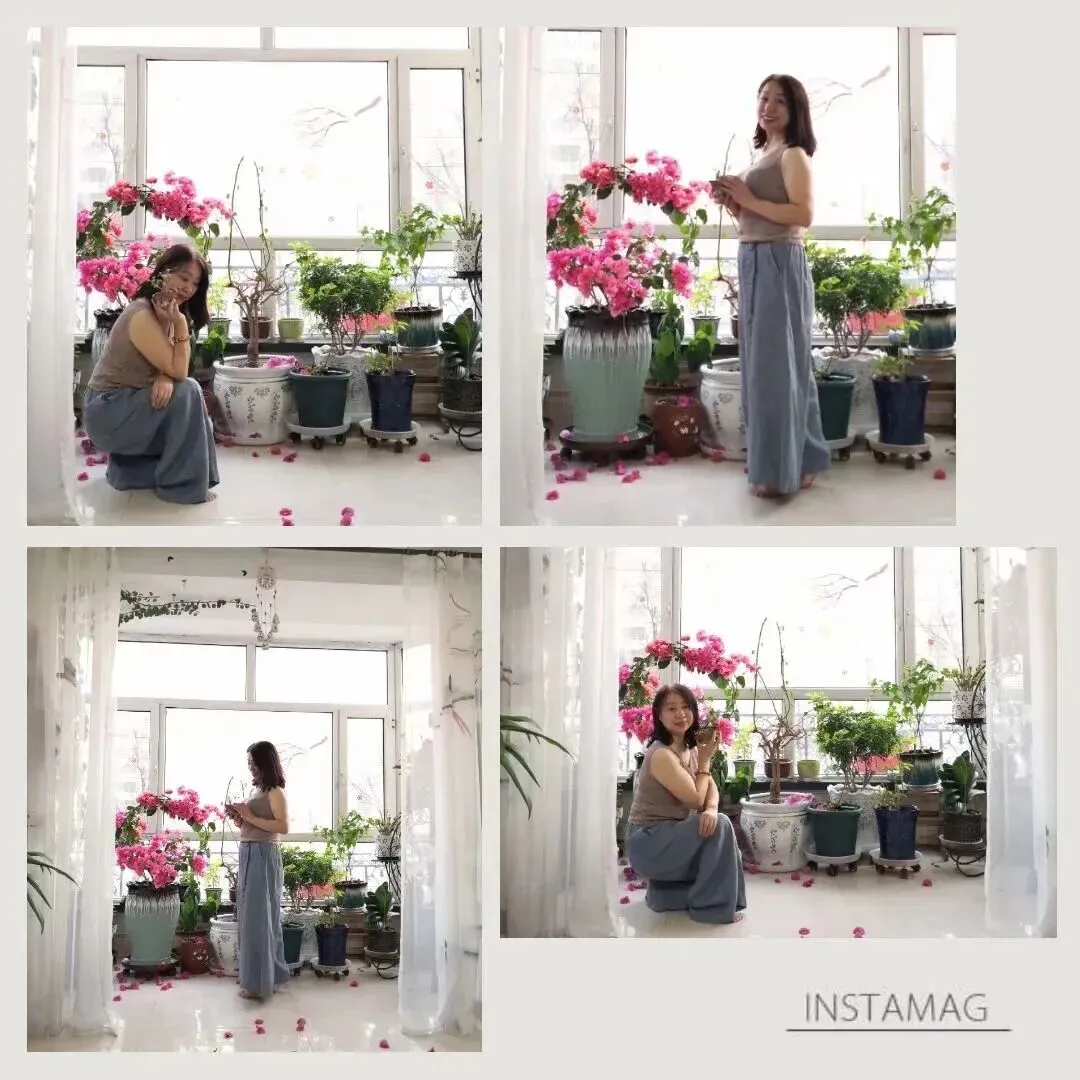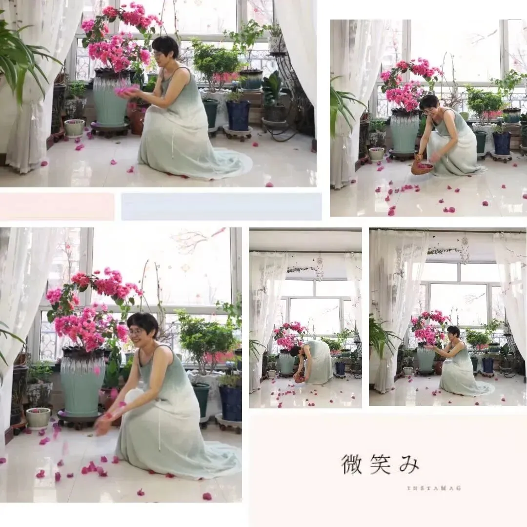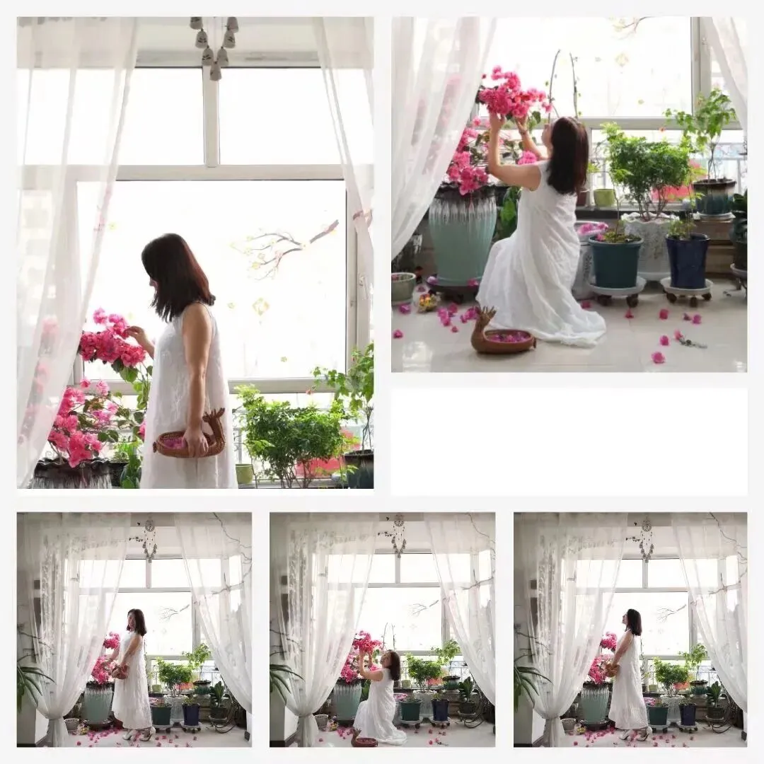 开始第四套服装!尉姐用力晃了晃那盆三角梅,顷刻,便花朵满地,她手拿花篮捡起了花瓣,我赶紧抓拍。