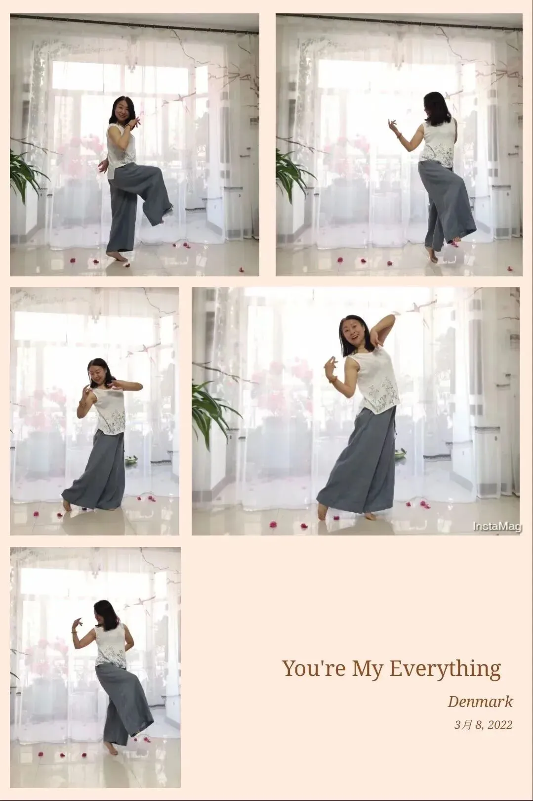 尉姐又开始翩翩起舞了,她说:“我找到感觉了。” 然后还告诉我:“你别光顾拍,记记动作,一会你拍的时候好用。” 艾玛,这姿势,那真是难为我了。