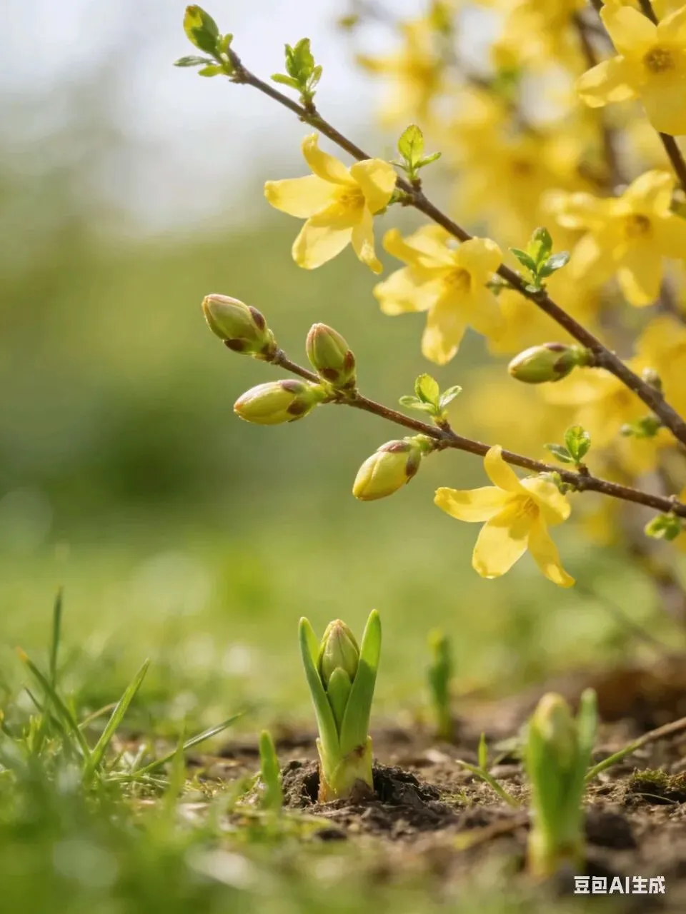 小区避风的一角,一棵迎春花鼓起了嫩黄的花苞。
