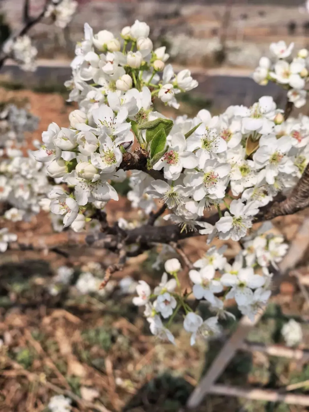 进了梨园,才真正看清了这白的模样。那花瓣儿薄得透明,像是用上好的宣纸裁出来的,太阳光从背后透过来,能看见细细的脉络,颤巍巍地,带着点儿怯意。一簇簇,一丛丛,密密匝匝地挤在枝头,偏又各自舒展着,谁也不压着谁。风一来,便簌簌地动起来,那声音极轻,极细,像是谁在远处低声说着悄悄话。