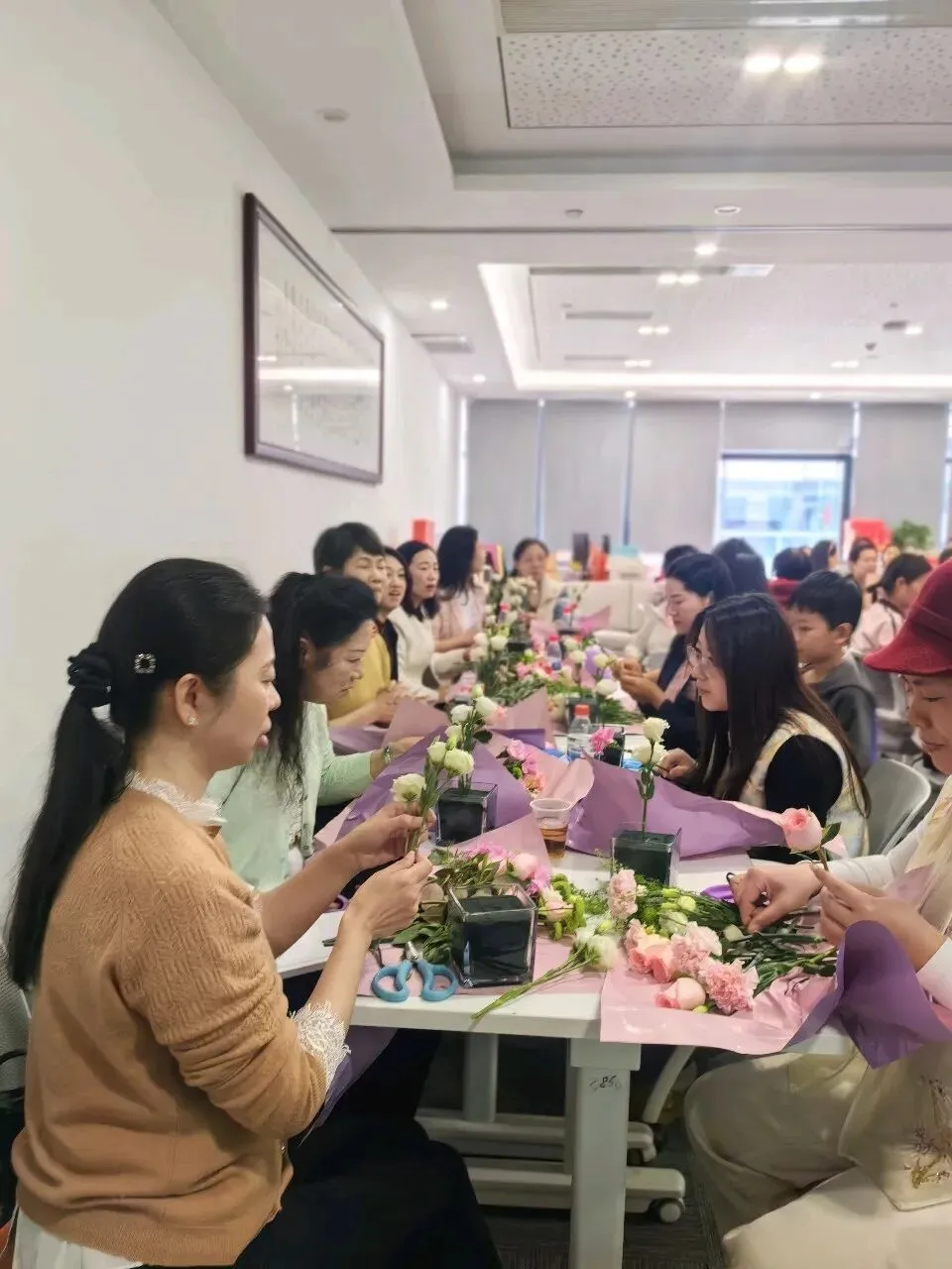 干货满满的分享过后,插花雅韵如约而至。当指尖触碰缤纷的花材,当创意邂逅春日的浪漫,大家沉浸在一花一叶的搭配中,修剪、造型、点缀,将对生活的热爱与对未来的期许,都融入这一方精致的花艺作品里。每一束花,都是独一无二的创作,正如每一位女性,都有属于自己的光芒;每一次搭配,都是一次美的探索,正如我们在职业道路上,不断探索、不断成长,终将绽放属于自己的精彩。