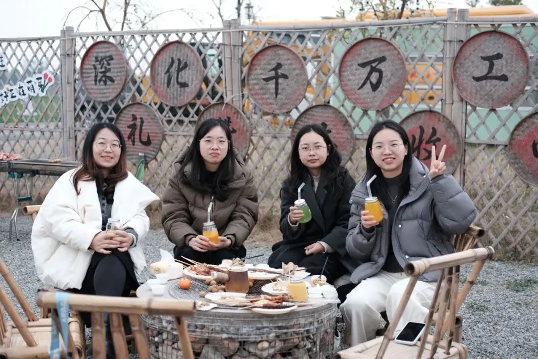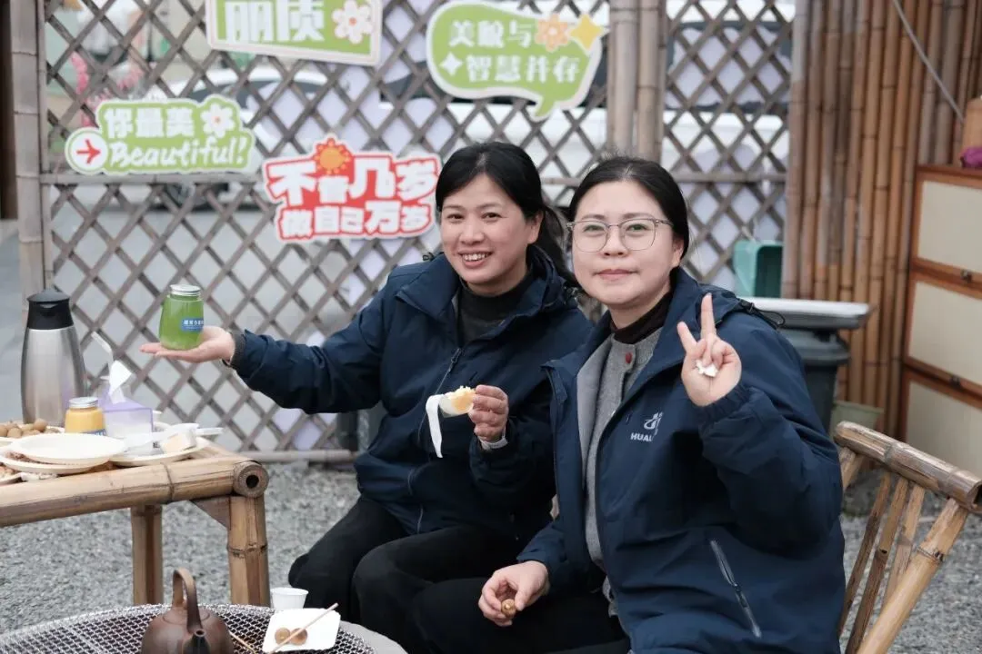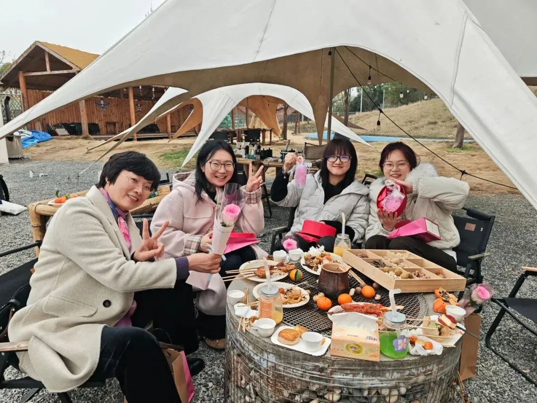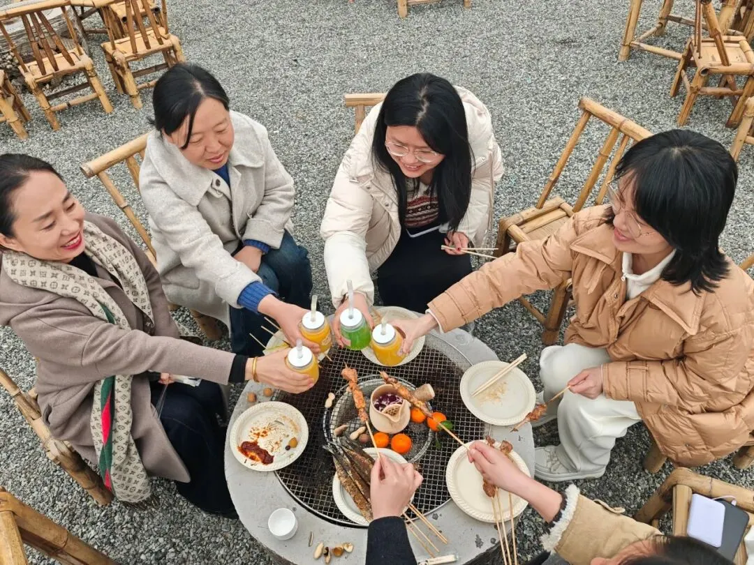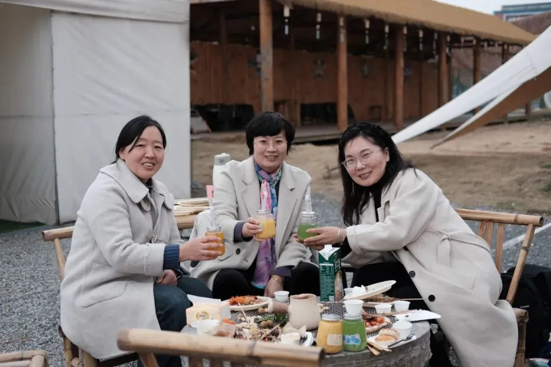 雅致布景与田园风光相映成趣,签到时的小惊喜,让春日美好从初见便入心。女神们围坐炉旁,执盏煮茶,红枣、桂圆与玫瑰干花入壶慢煨,茶汤清甜,茶香袅袅;手冲咖啡的醇厚气息,随微风在稻浪间漾开。精致甜品、缤纷鲜果、趣味小食摆满桌台,大家暂别课堂的忙碌,聊生活意趣,茶香裹着笑语,闲叙间,皆是岁月温柔。