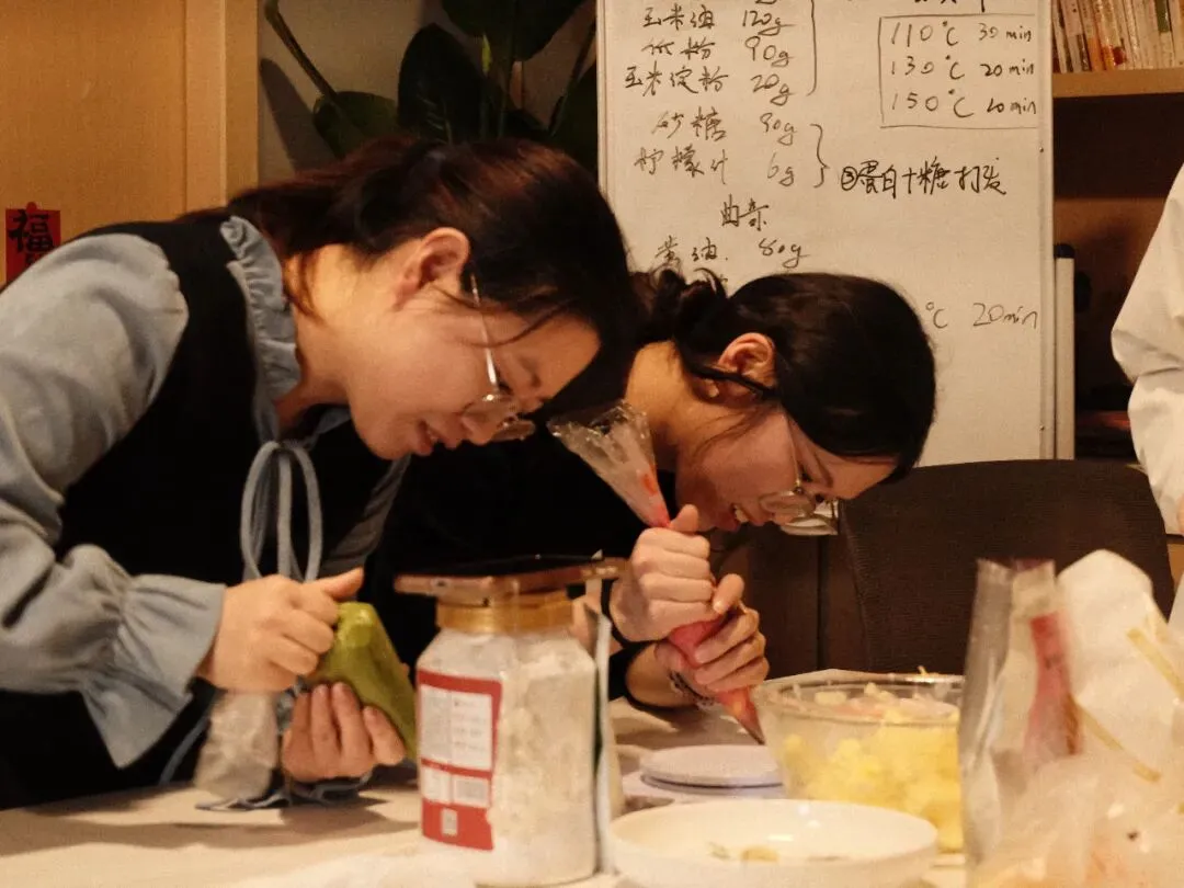 烤箱叮咚响个不停。有人在找糖霜,有人在抢烤盘,还有人的裱花嘴卡在裱花袋里出不来......整个下午,就像一锅煮沸的水,咕嘟咕嘟冒着热气。