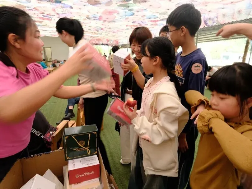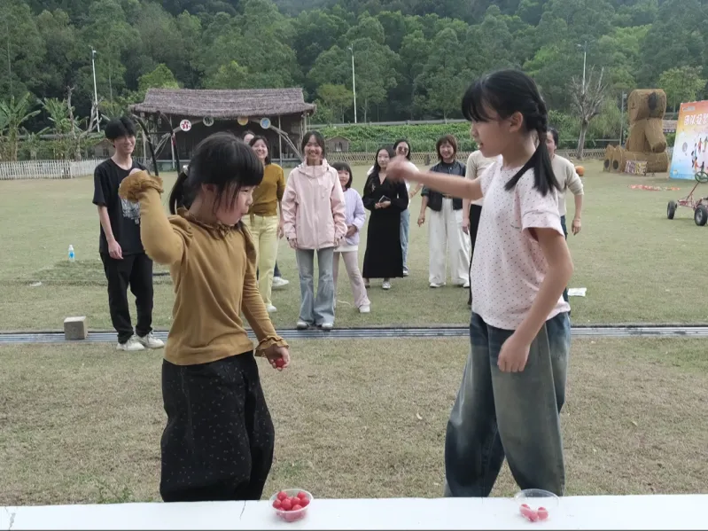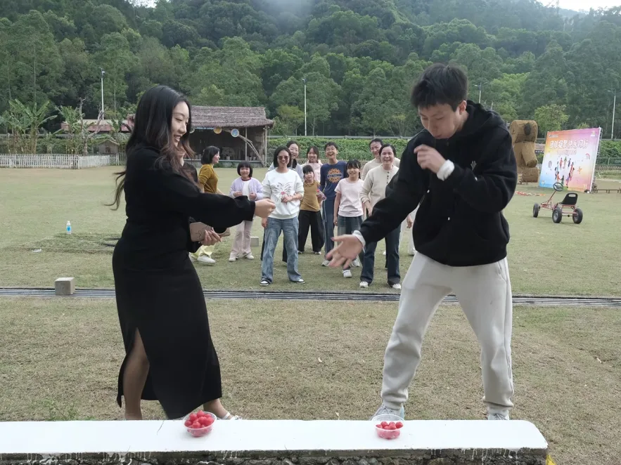 乐享完美食时光,趣味团建游戏火热开启,鼓动人心、大脚板竞速、抢杯子大作战、吃番茄挑战四大游戏轮番上阵,大人与小孩齐心协力,在欢声笑语中尽情释放活力,既收获了游戏乐趣,也拉近了彼此距离,深化了惠饶同心的乡情羁绊。