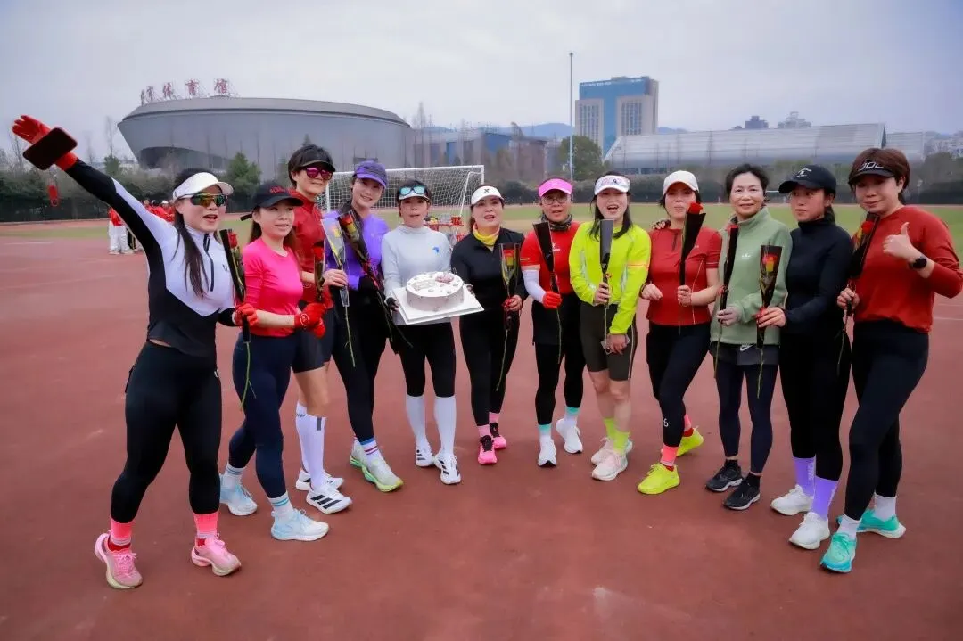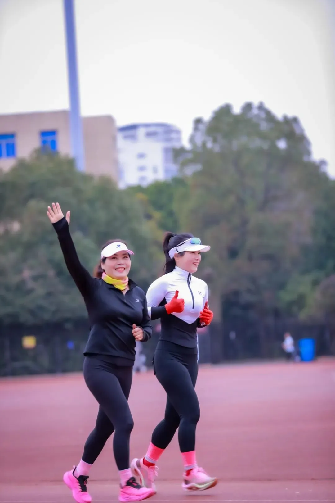 当晨光穿透薄雾,跑团女神们已身着亮色战袍齐聚起点。拉伸、热身、击掌鼓劲……她们用笑容驱散寒意,用行动诠释“柔肩亦担重任”!从3公里到10公里,每一步都踏响自信的鼓点,每一公里都是对自我的超越。