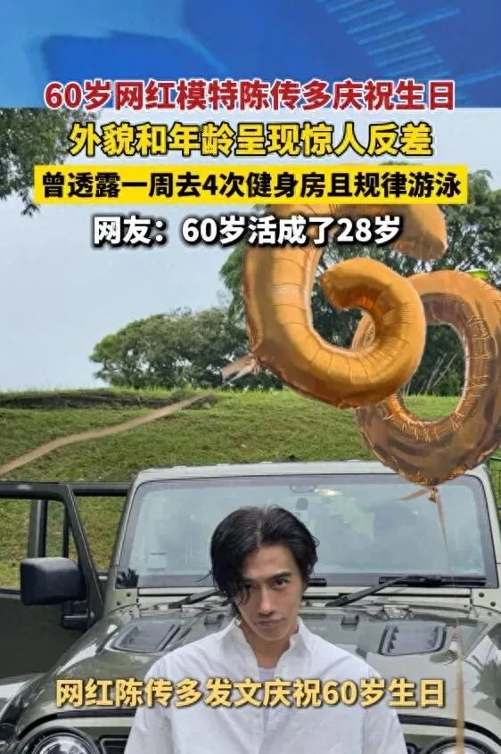 60岁网红模特陈传多庆祝生日,外貌和年龄呈现惊人反差,曾透露一周去4次健身房且规律游泳