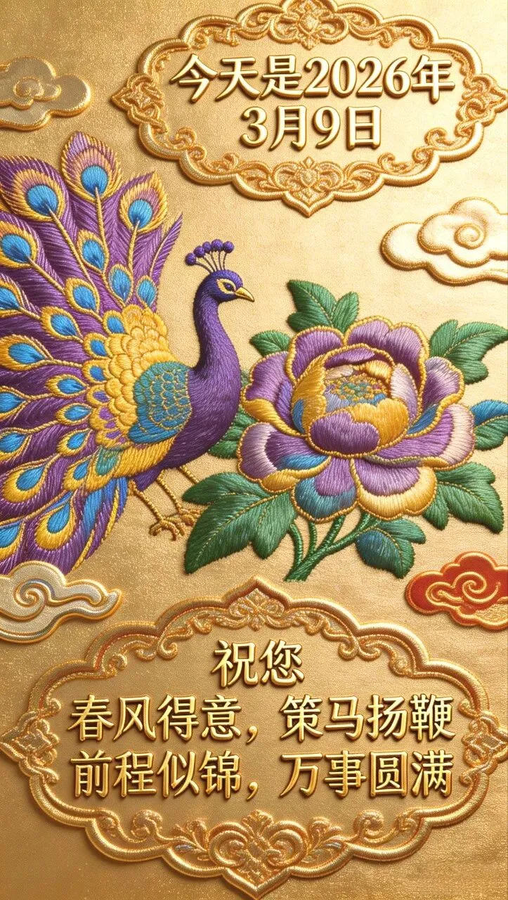 当前位置:首页>美女资讯>2026年3月9日祝福语壁纸:祝您 春风得意,策马扬鞭,前程似锦,万事圆满.
