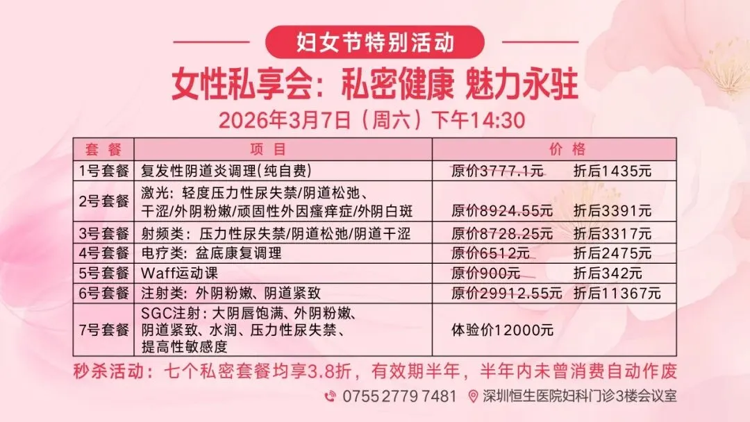 三月春风暖,巾帼绽芳华。在三八国际妇女节来临之际,深圳恒生医院以爱与专业为礼,连续开展两场女性健康公益活动,聚焦私密养护与盆底健康,用贴心服务守护每一位女性的健康与自信。