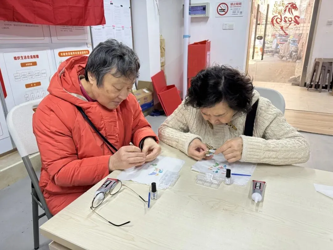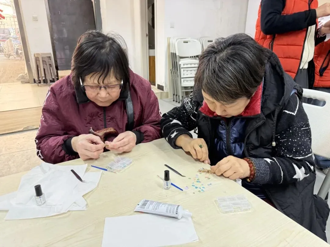 活动现场暖意融融,非遗螺钿胸针 DIY 环节将传统文化之美演绎得淋漓尽致。螺钿工艺作为国家级非物质文化遗产,以贝壳天然光泽为韵,以匠心雕琢为魂。厦门银行的施老师提前备齐流光溢彩的贝壳螺片、精致胸针底座、专业工具,在施老师的细致讲解与手把手指导下,姐妹们化身巧手匠人,全神贯注投入创作。