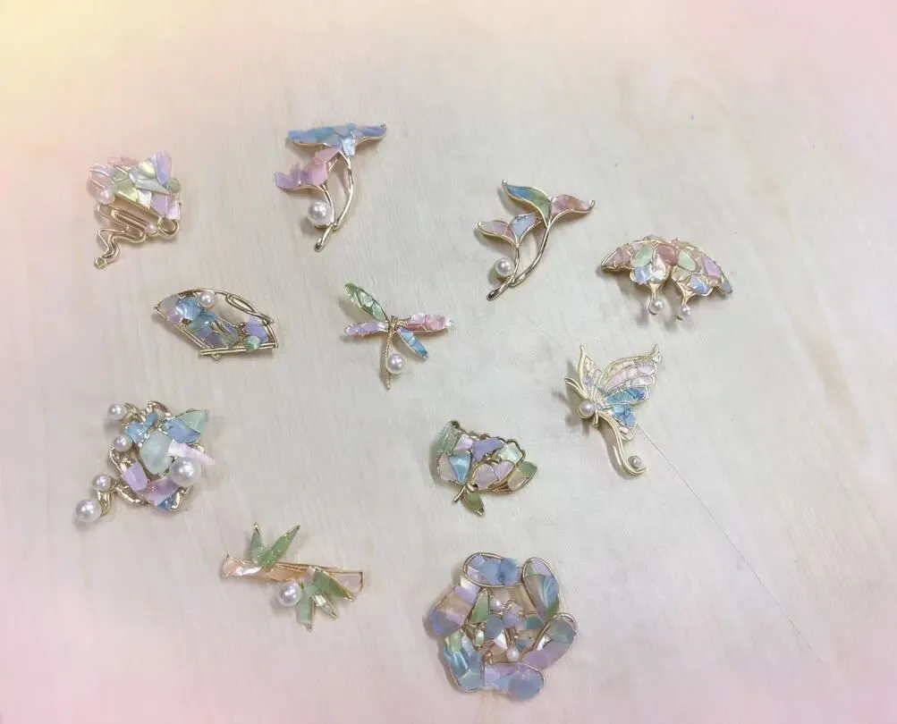指尖轻捏螺片、细心排版构图、耐心粘贴定型,每一个步骤都饱含巧思,每一次拼接都凝聚匠心。贝壳的莹润光泽与胸针的精致造型完美融合,花朵灵动、祥云雅致、几何简约,一枚枚专属定制的螺钿胸针惊艳亮相。