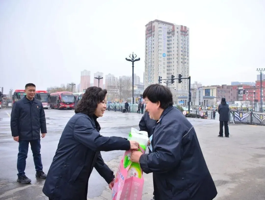 3月8日当天,集团党委书记、董事长金燕走进基层一线站点场区,为节日坚守岗位的女职工送上祝福与关怀,并与女职工们亲切交流,深入了解女职工的工作和生活情况,感谢大家的辛苦与奉献。