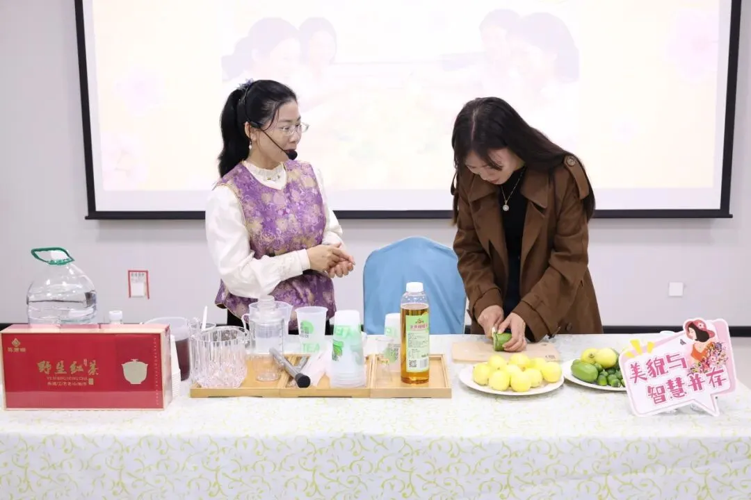 一场清甜之约,治愈忙碌日常。3月4日下午,集团总部一楼8号会议室暖意融融,「手打柠檬茶清甜下午茶」活动如期举行,25位女性同事欢聚一堂,共赴这场温柔邂逅。研习院联合外部专业机构,邀请专业指导老师现场教学,从新鲜柠檬的处理、冰块的搭配,到捶打力度的掌控、糖浆的调配,每一个步骤都细致讲解、耐心指导。