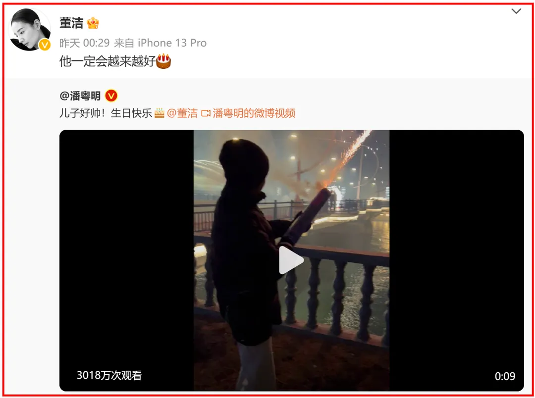 潘老师一如既往为儿子微博庆生,但这次有视频,并@董洁,董洁也立马转发回复,还回关了他。