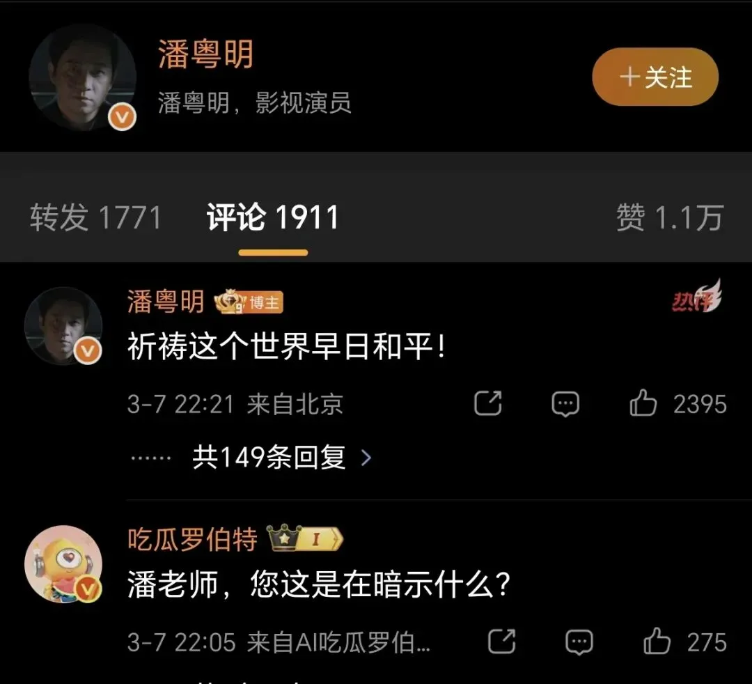 而潘老师丢开现实的纷纷扰扰,转身祈祷世界和平去了。