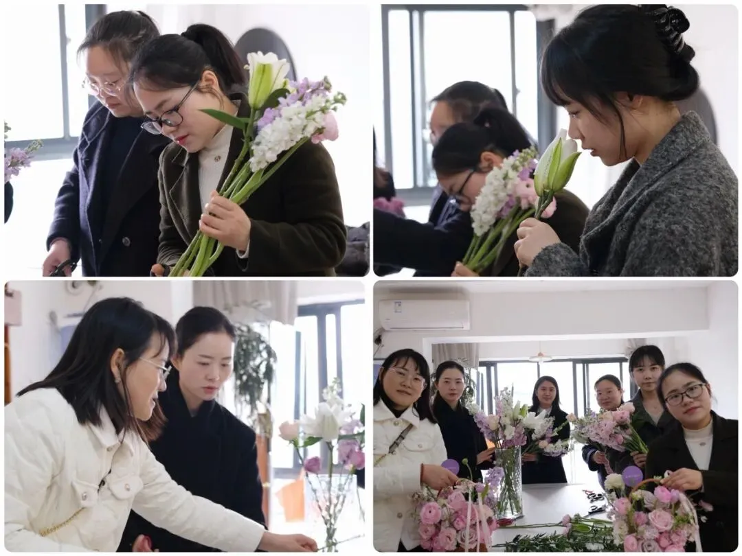 创意插花环节湖北分公司本部与宜昌西陵一路营业部同步开启,在花艺老师的指导下,女职工们巧手修剪、精心搭配,将一束束鲜花错落组合,一件件雅致清新的花艺作品次第呈现。大家手持亲手制作的花束,脸上洋溢着愉悦自信的笑容,现场花香弥漫、暖意融融,处处展现着新时代女性的优雅风采。
