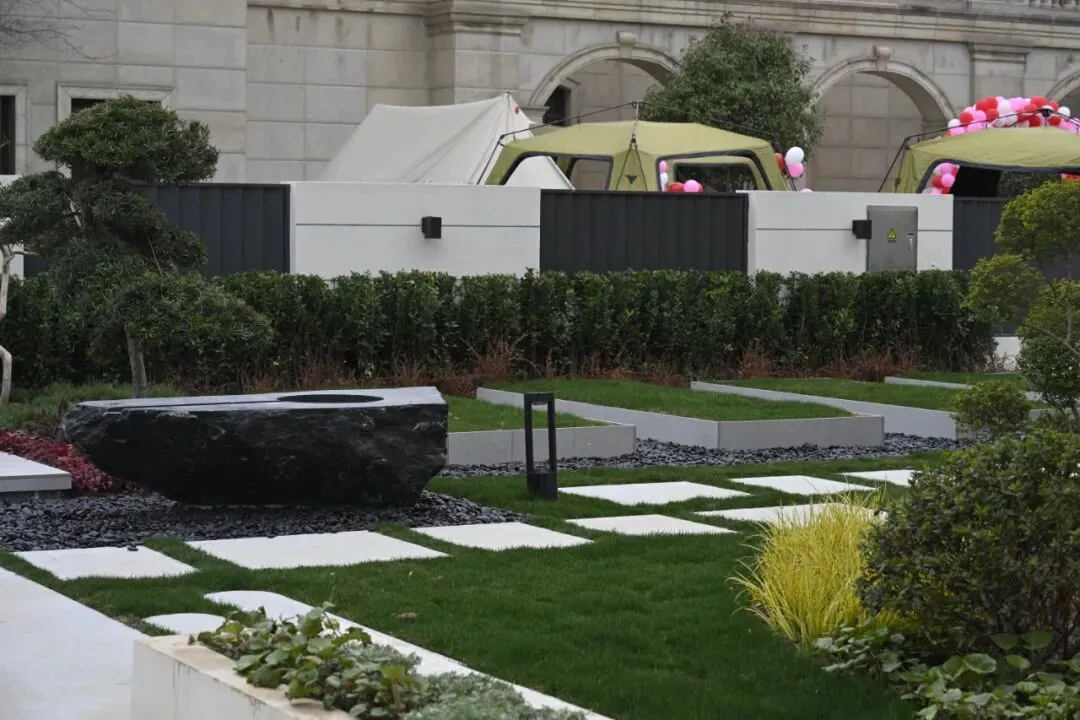 草坪Party,是本次活动中的独特体验,将墅居生活的松弛感与仪式感拉满。大草坪上,围炉煮茶体验区温馨排布,炭火噼啪作响,陶壶氤氲出袅袅茶香,软糯烤物搭配精致茶点,烟火气与春日诗意完美交织;色彩鲜亮的气球与雅致帐篷错落点缀,与翠绿草坪相映成趣,成为现场最出片的打卡点。