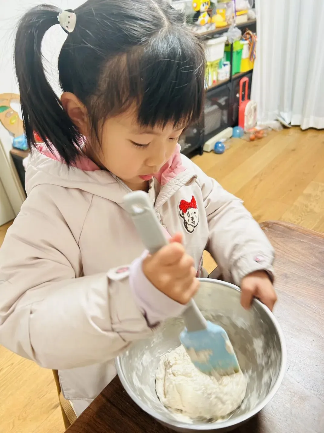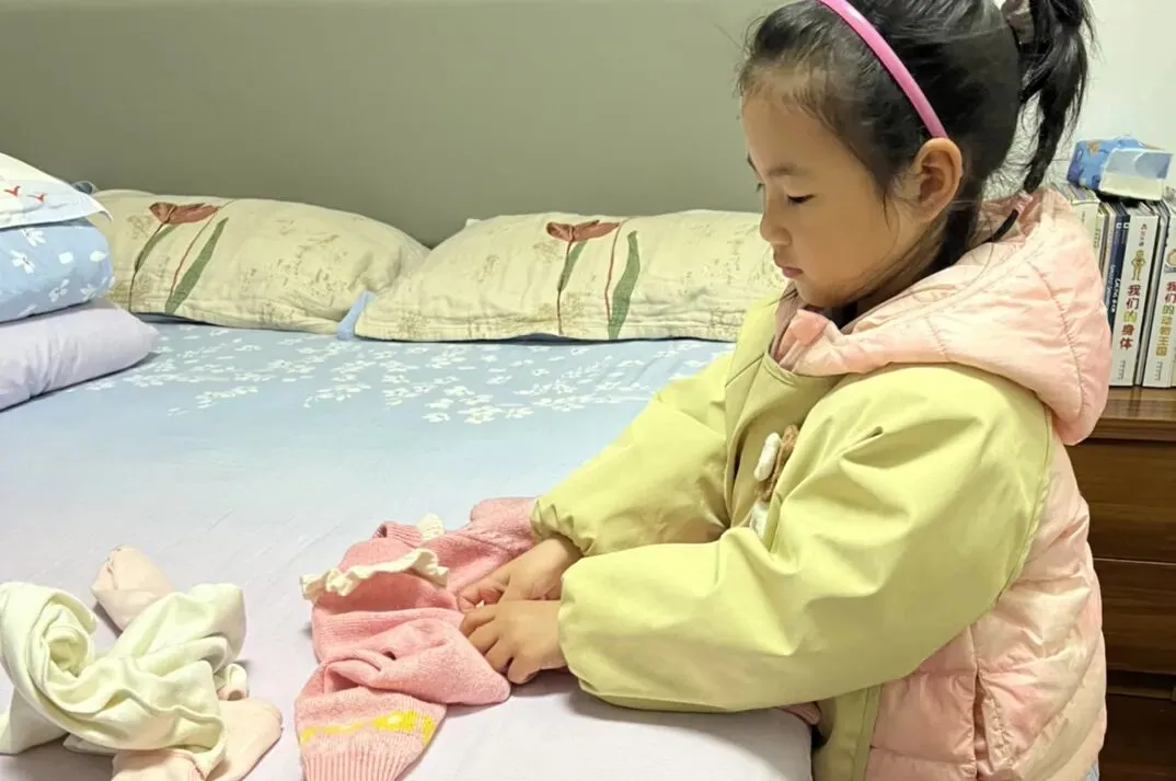 中班的孩子们主动为长辈做力所能及的小事:整理衣物、摆放鞋子、收拾桌面……小小的身影传递着大大的关心与体贴,稚嫩的举动温暖了每一位长辈的心。
