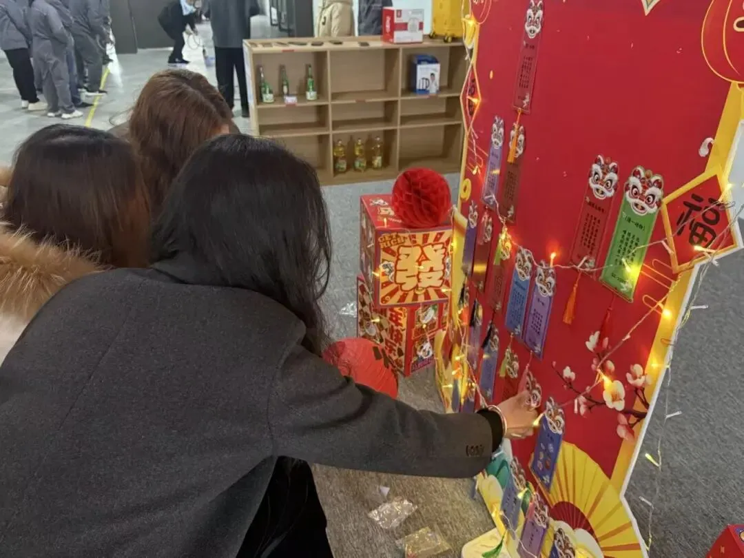行政的小伙伴们早早准备好了红彤彤的灯谜条,挂起来的瞬间,年味又回来了。大家伙儿围在一起,有的眉头紧锁认真思考,有的掏出手机“场外求助”,猜中谜底的那一刻,开心得像个孩子,直奔领奖台。