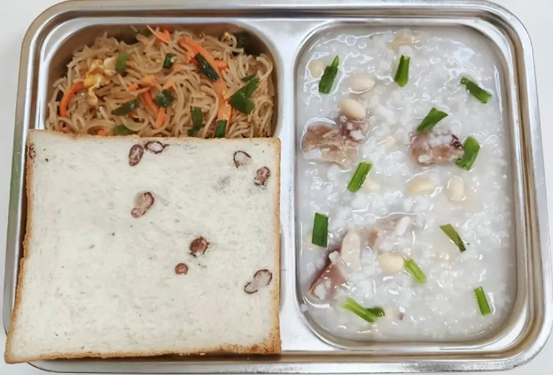 早餐示例3:黄豆咸骨粥+蚝油炒米粉+红豆吐司
